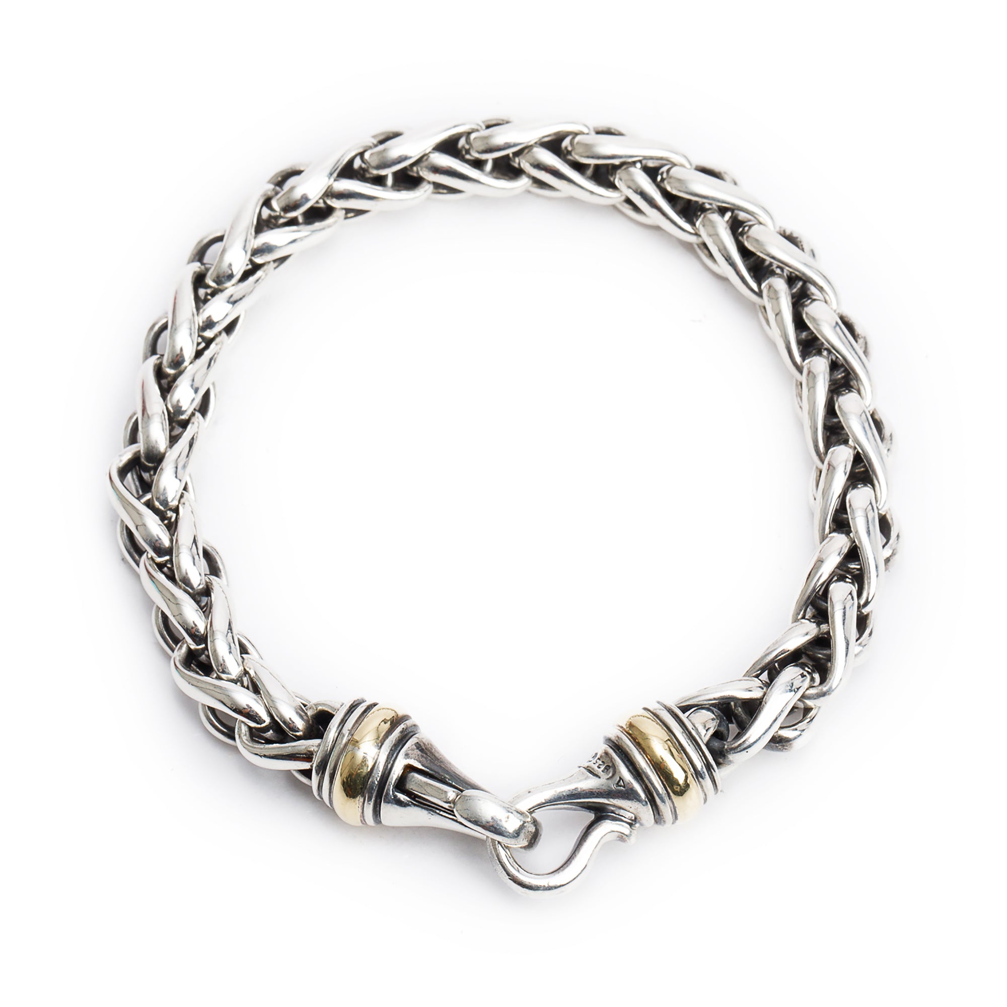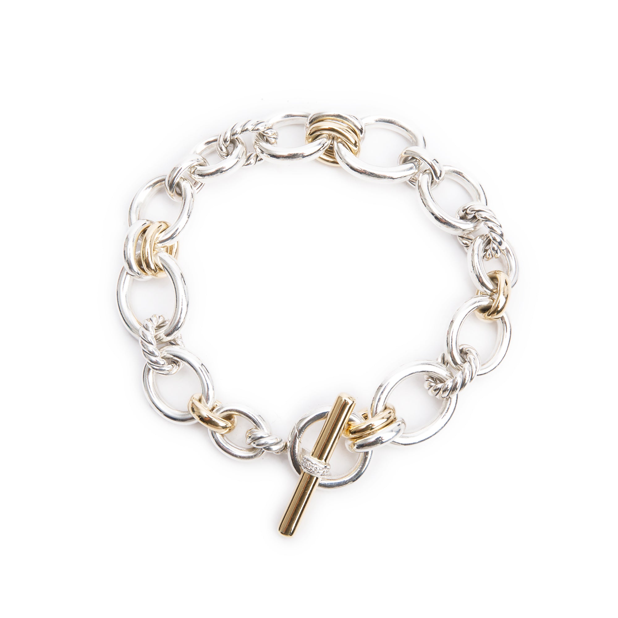 Sterling Silver & 18k Yellow Gold 5MM Cable Buckle Bracelet w/ Box