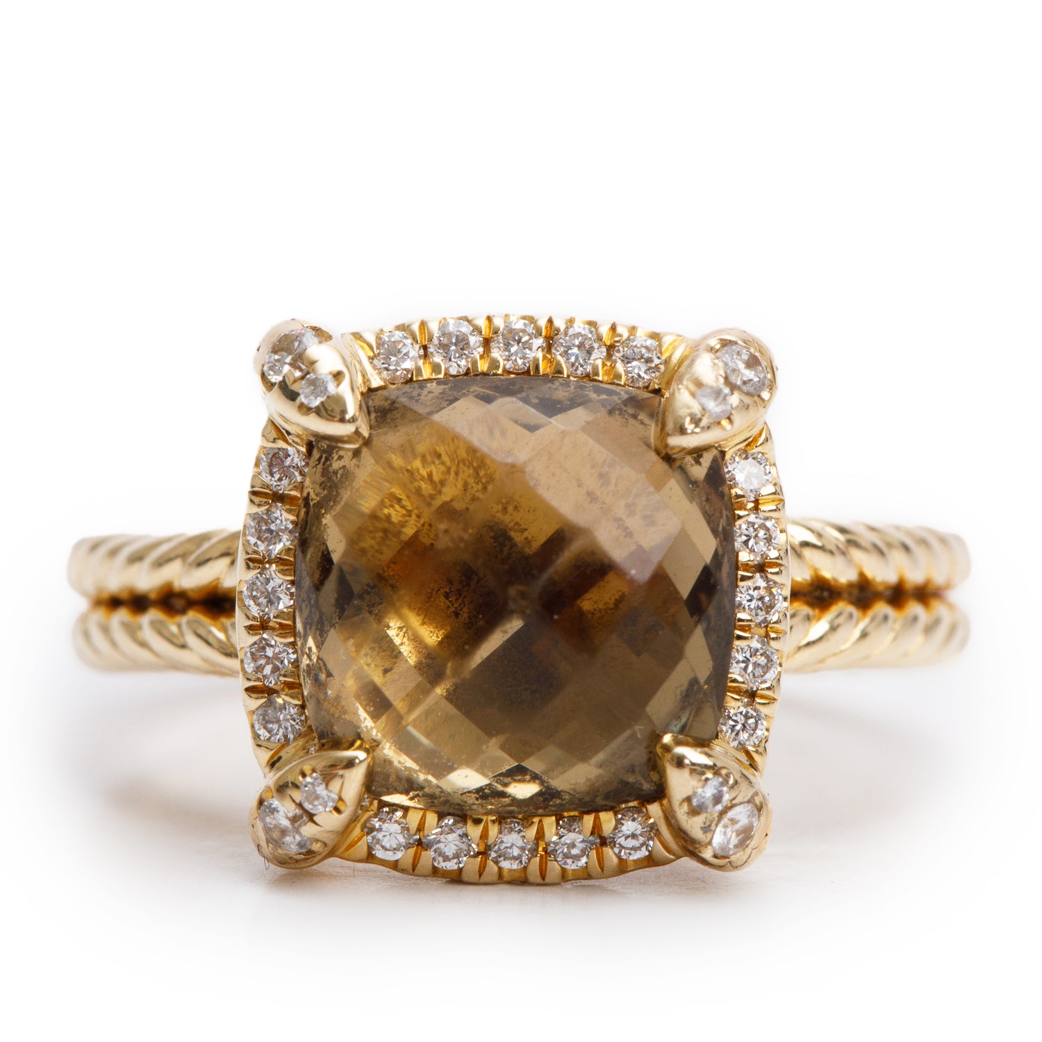 18k Gold Chatelaine Turquoise & Diamond Ring w/ Box