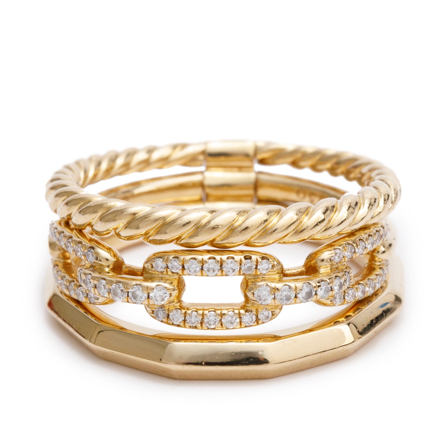 18k Gold Onyx & Diamond Cable Wrap Ring w/ Box