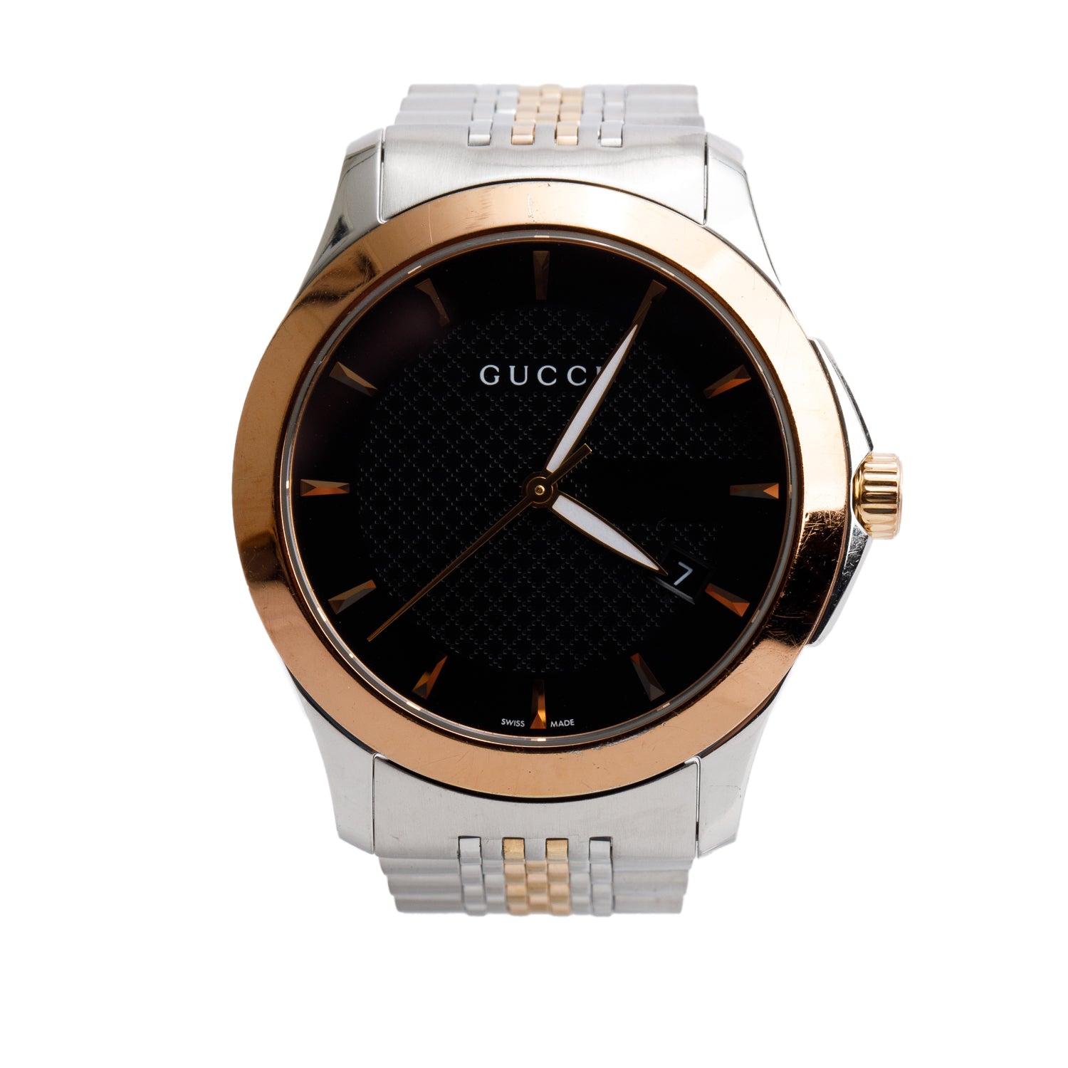 Yellow Gold Plated Stainless Steel & Black Leather Twirl 24 MM Watch