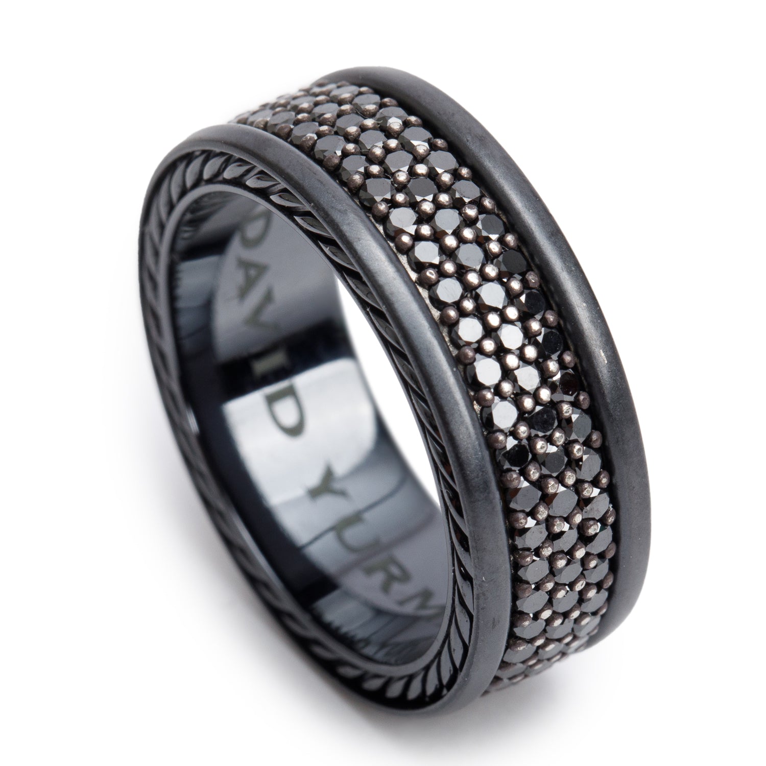 Black Titanium & Sterling Silver Grey Sapphire Streamline Three Row Band Ring, Size 7 w/ Box