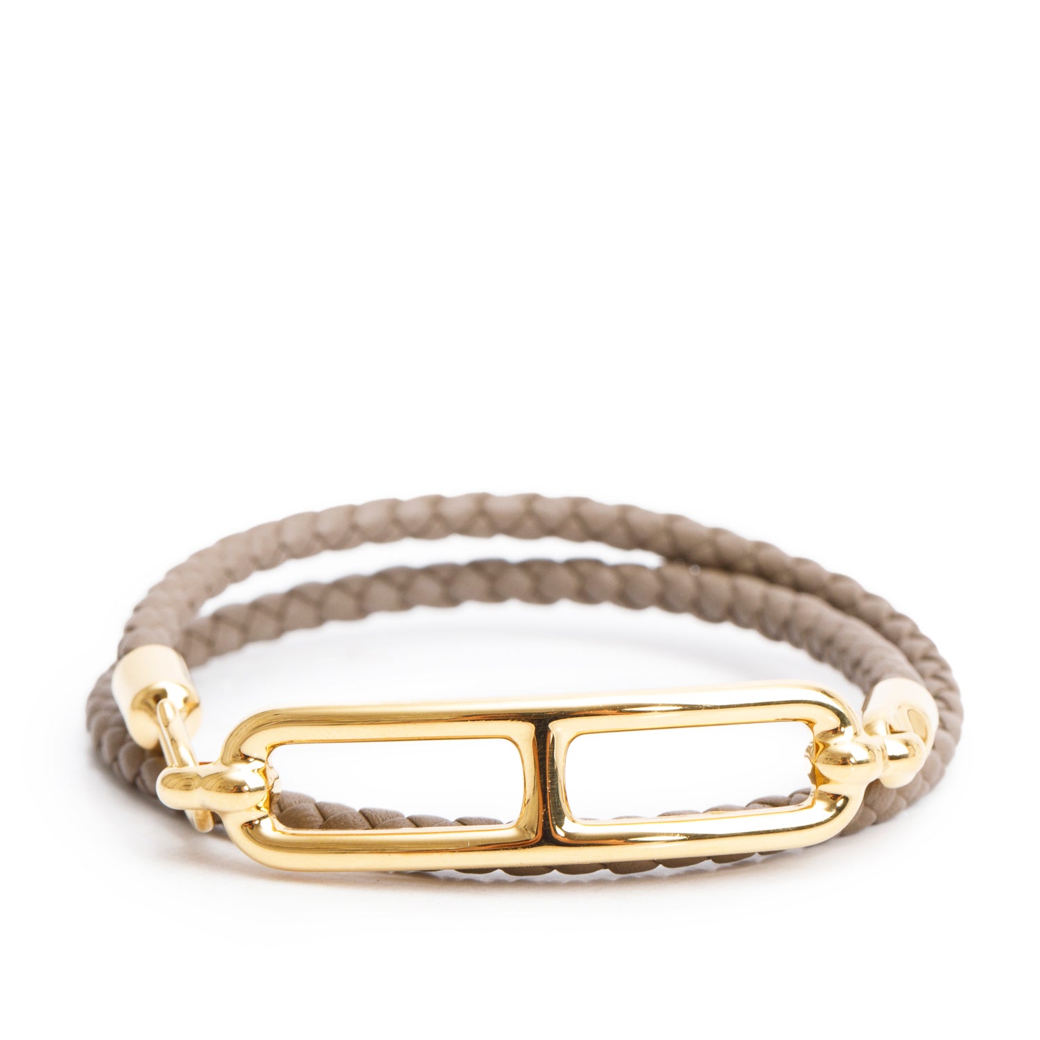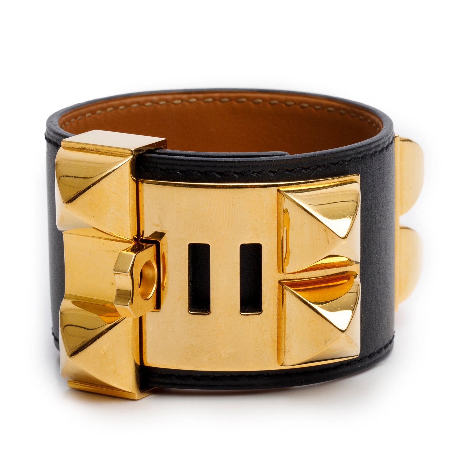 Gold-Plated Gold Box Calfskin Leather Collier de Chien Bracelet, Size S w/ Box