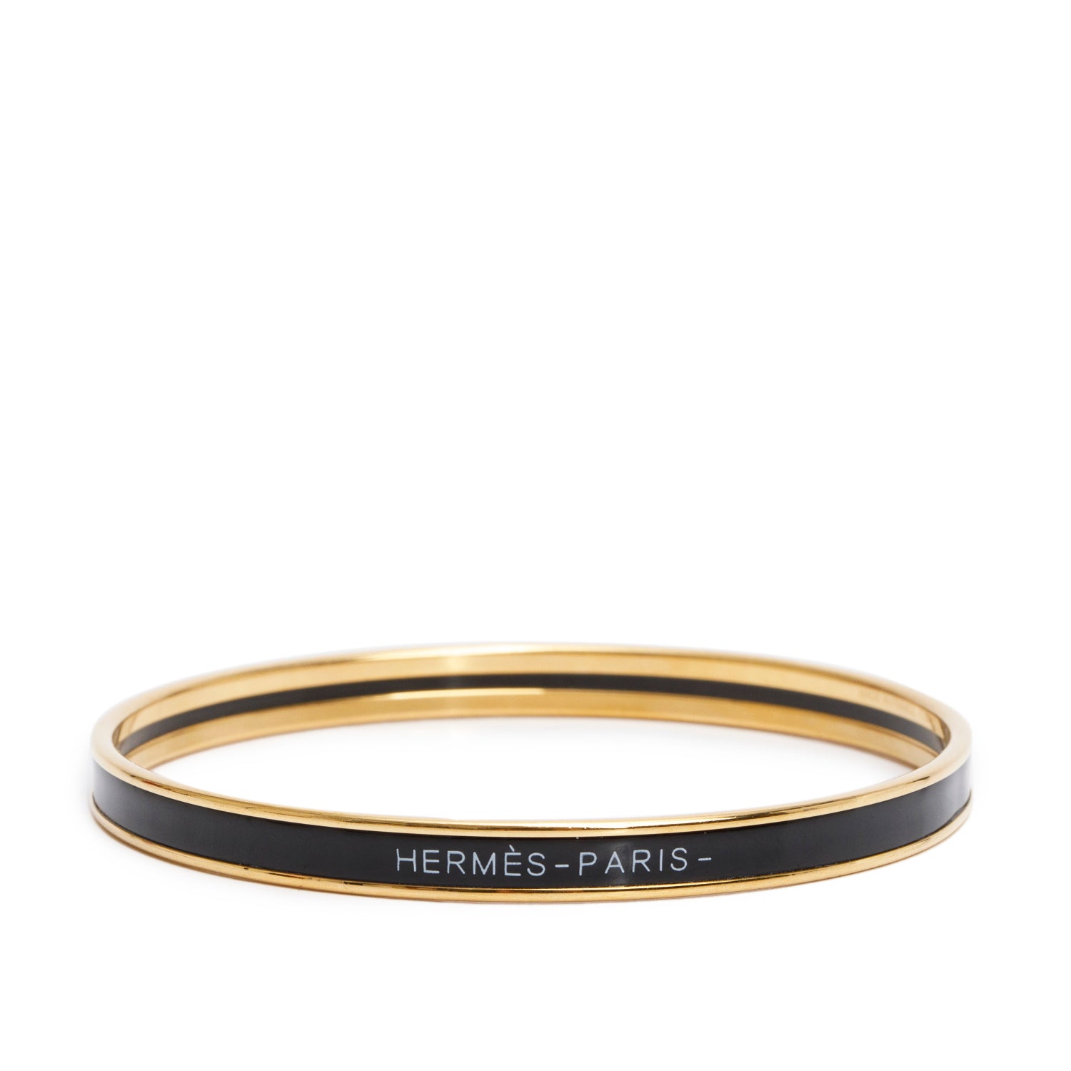 Gold-Plated Black Enamel Clic H XL Bracelet