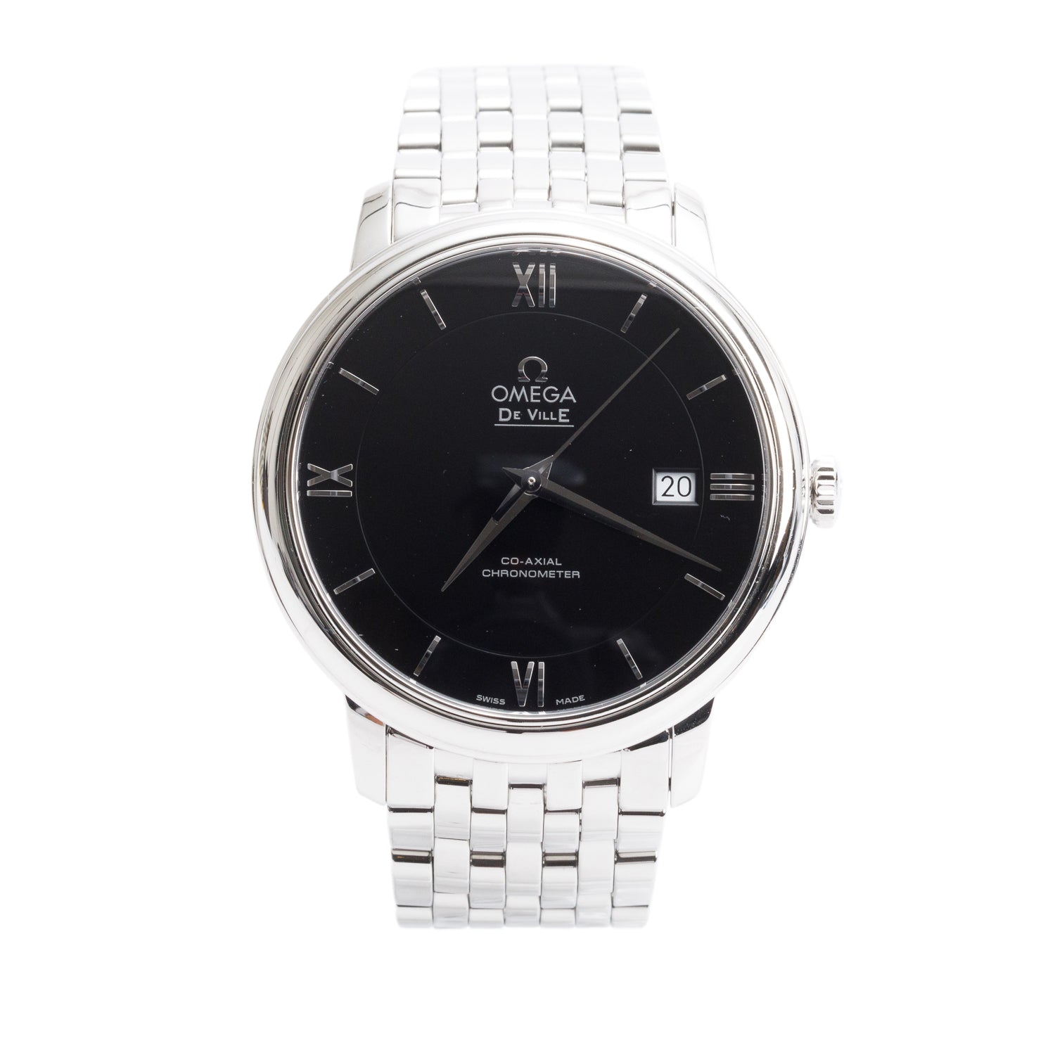 Stainless Steel De Ville Prestige 36.8 MM Automatic Watch Black Dial