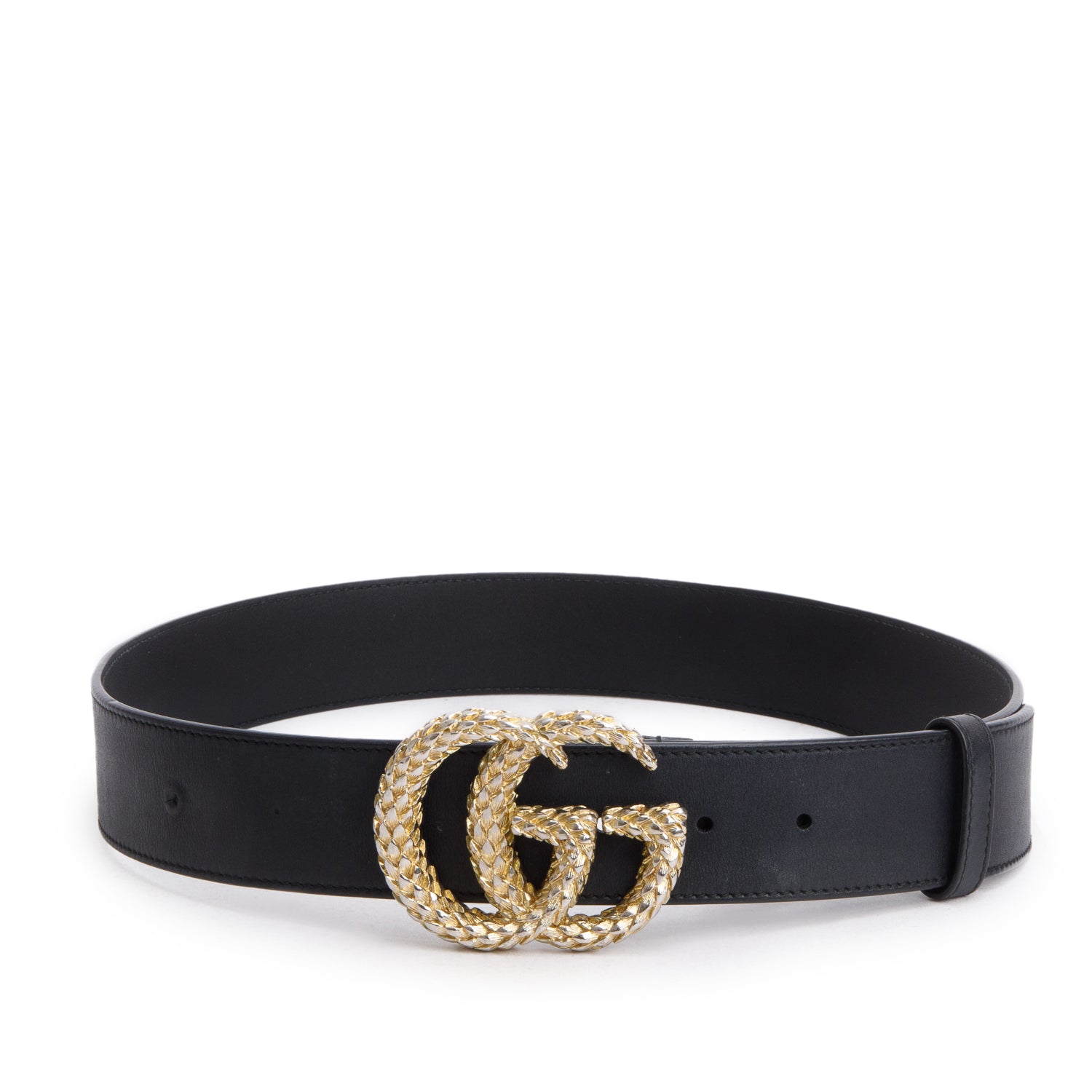 Black Calfskin Leather Textured Double G Wide Belt 85 34