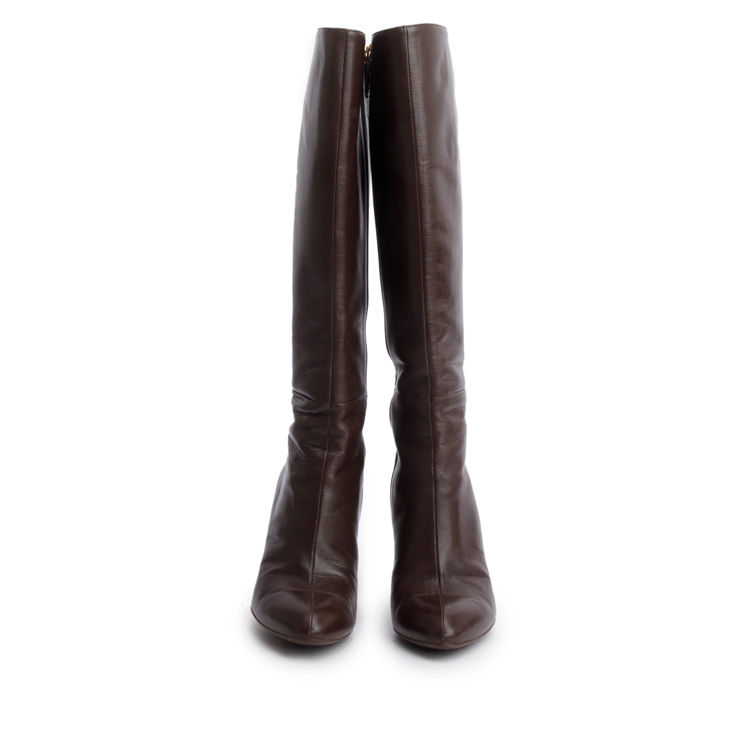 Condition: Very Good; slight creasing at exterior leather; minor scuffing at toes and wear at soles.