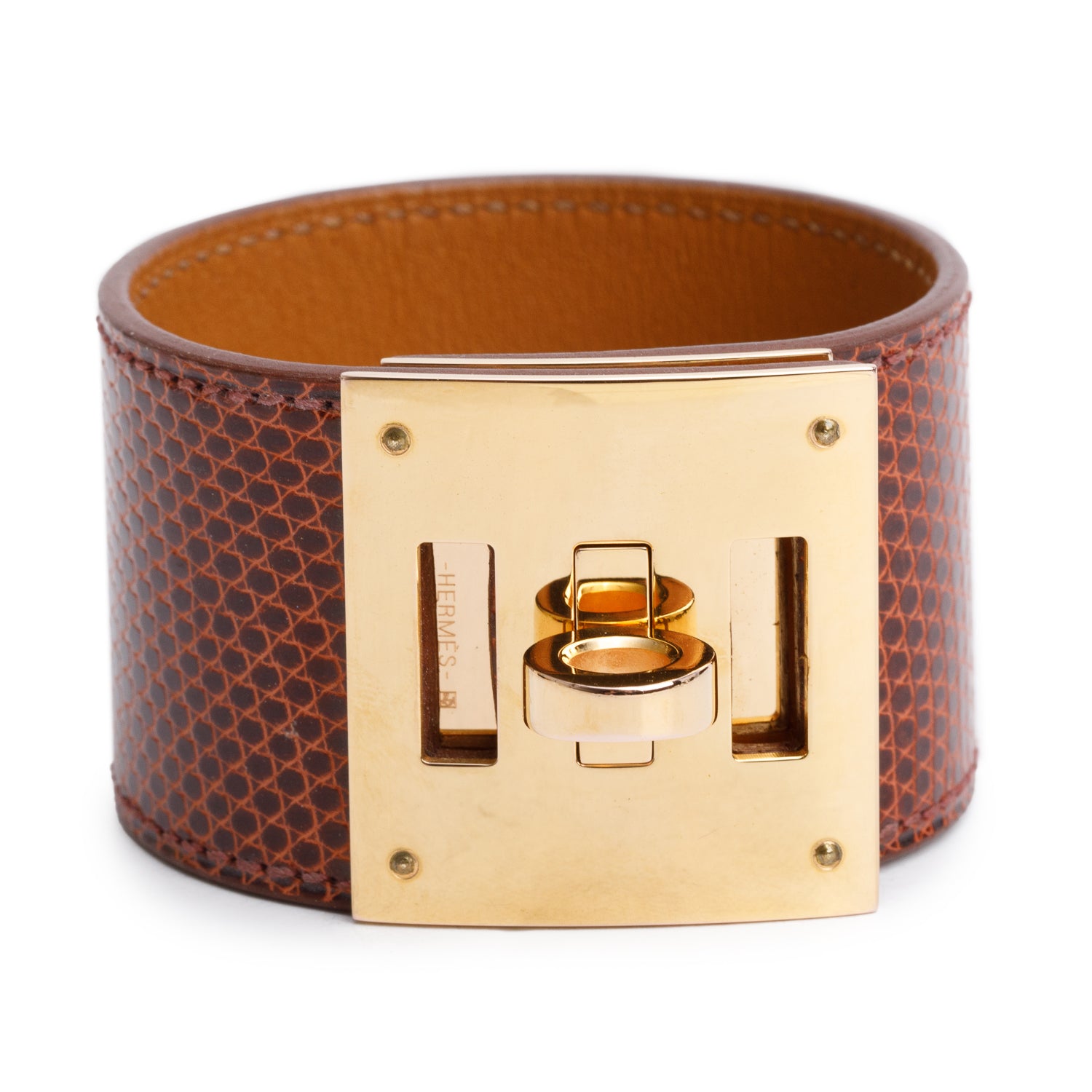 Gold-Plated Brown Lizard Kelly Dog Bracelet