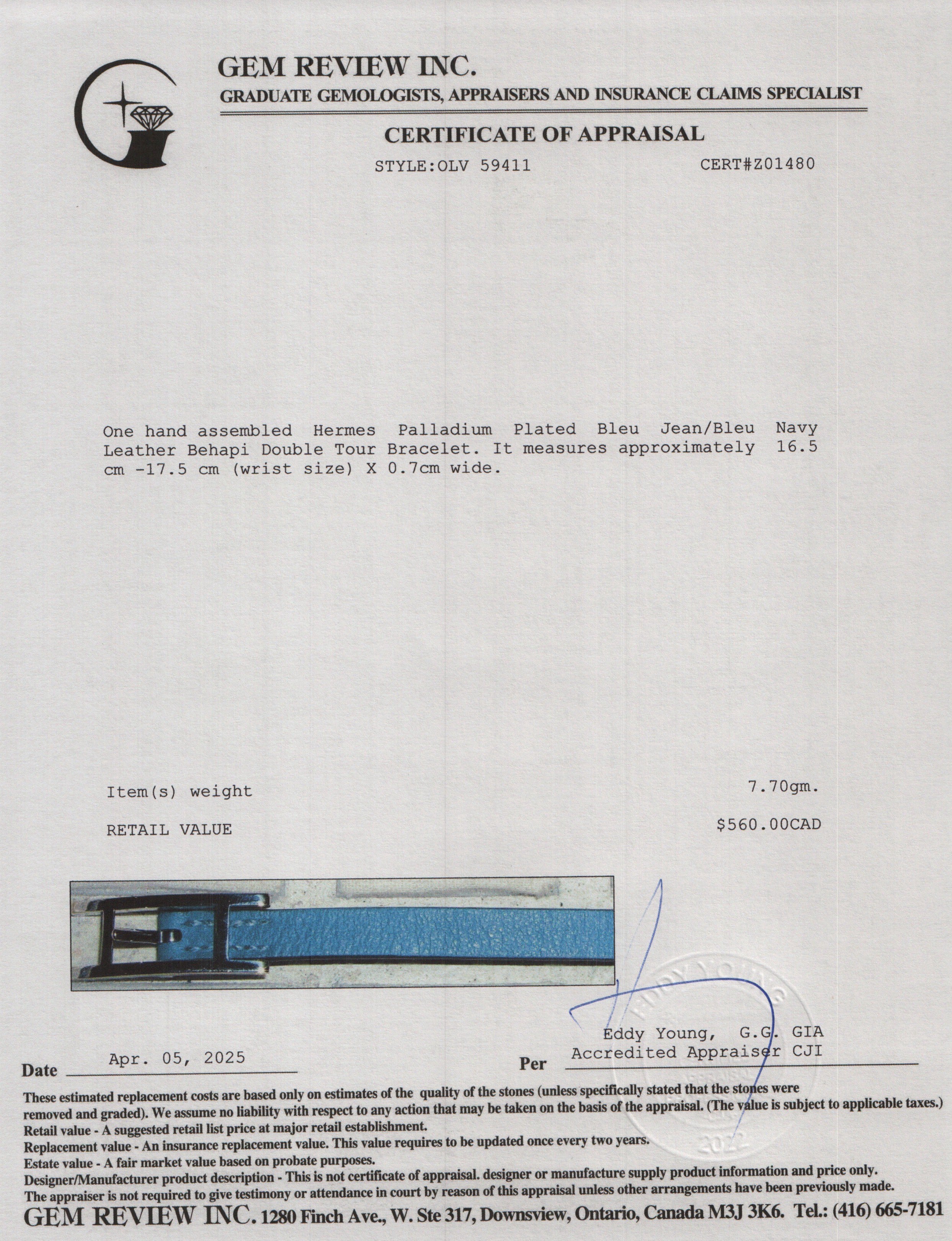 Palladium Plated Bleu Jean/Bleu Navy Leather Behapi Double Tour Bracelet