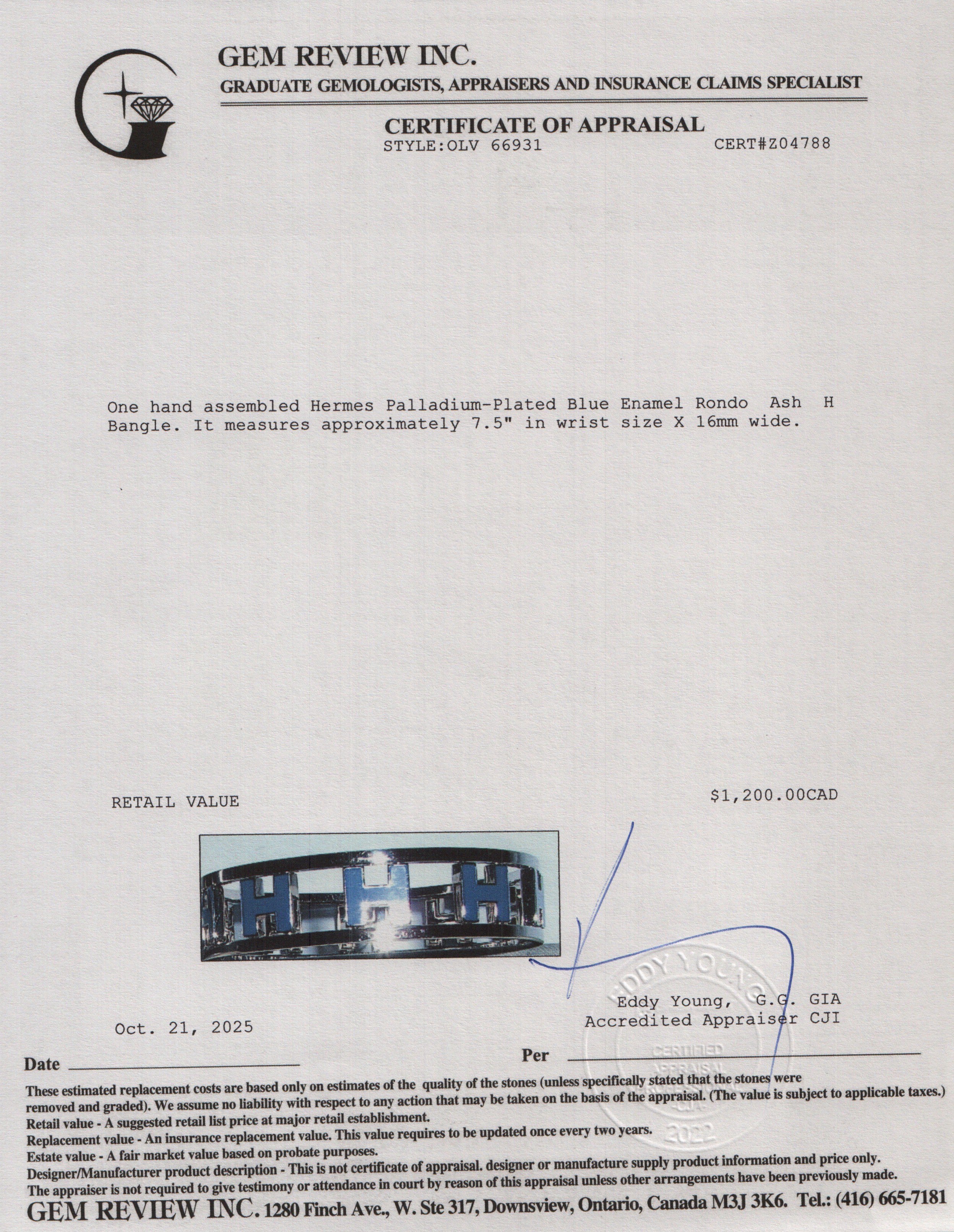 Palladium-Plated Blue Enamel Rondo Ash H Bangle