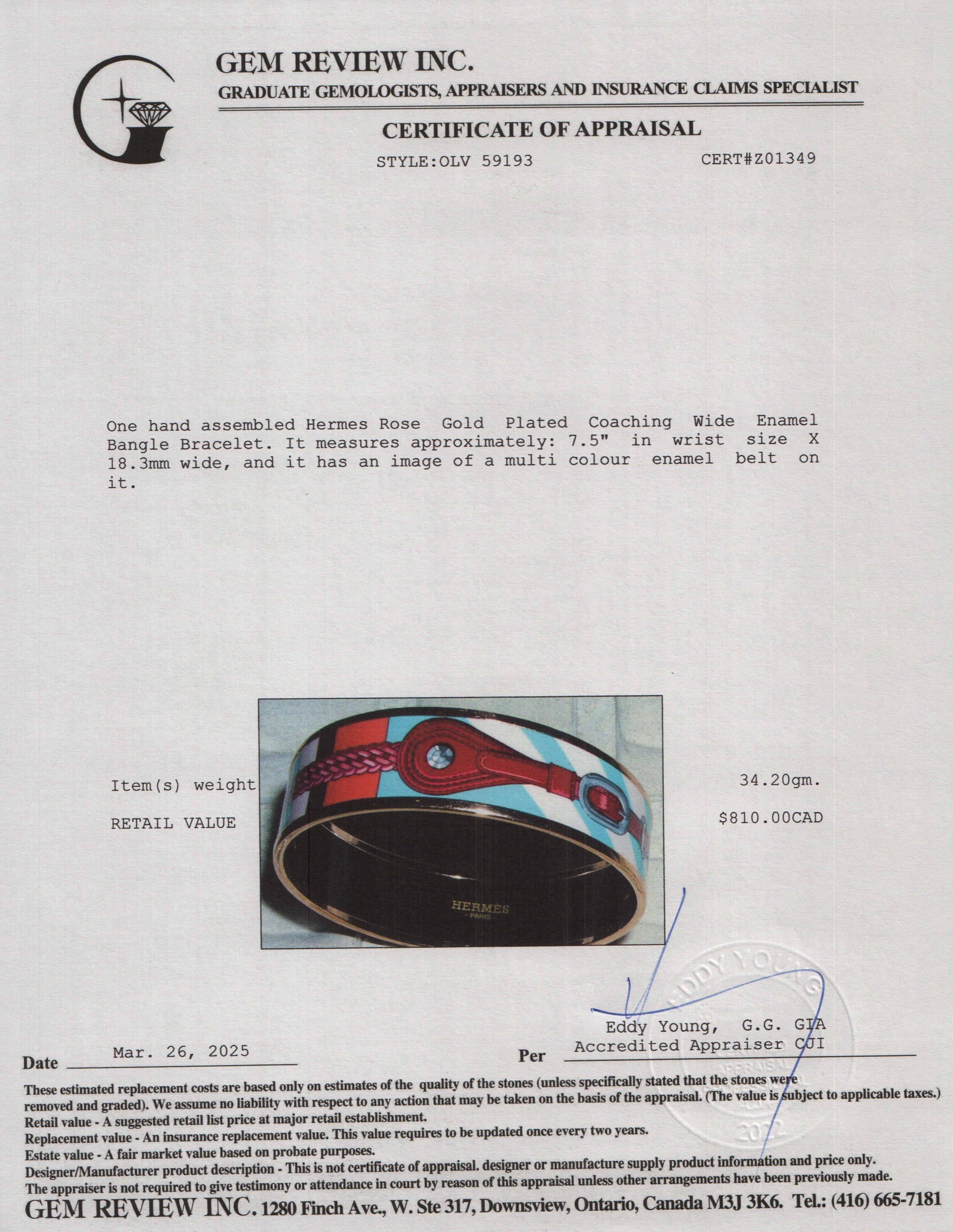 Rose Gold Plated Coaching Wide Enamel Bangle Bracelet w/ Box
