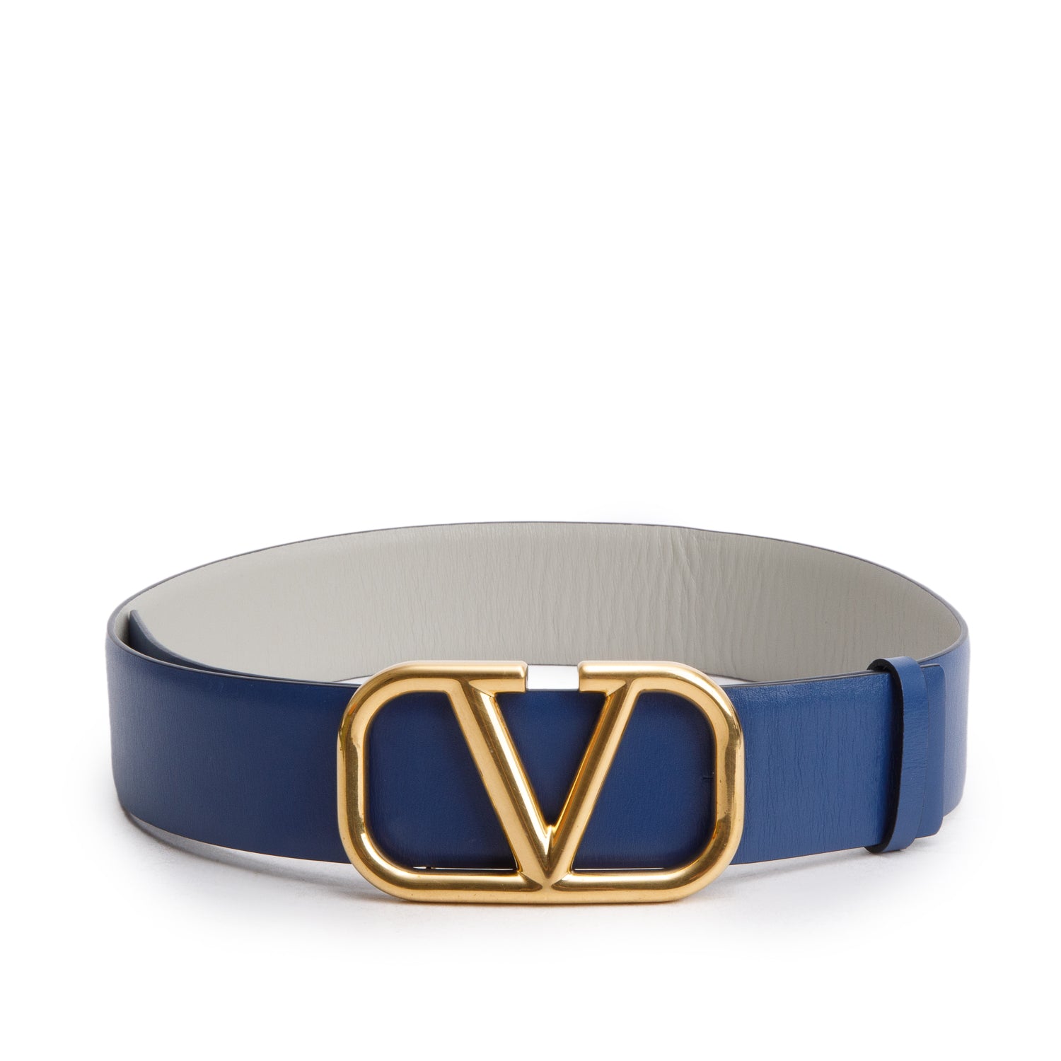 Blue Grey Glossy Calfskin VLogo Reversible Belt 70 28 w/ Box