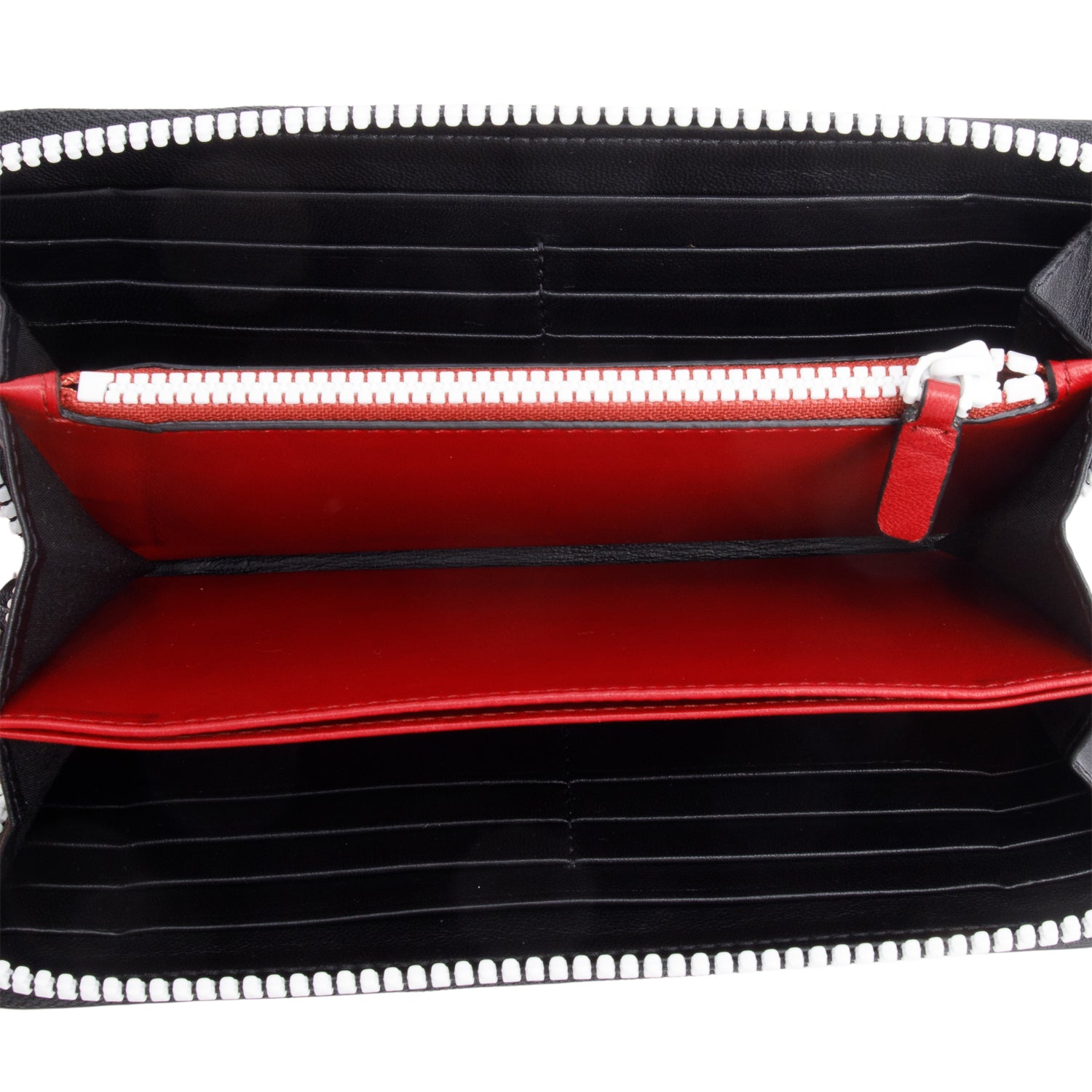Black Calfskin Leather White Spike Rockstud Zippered Wallet