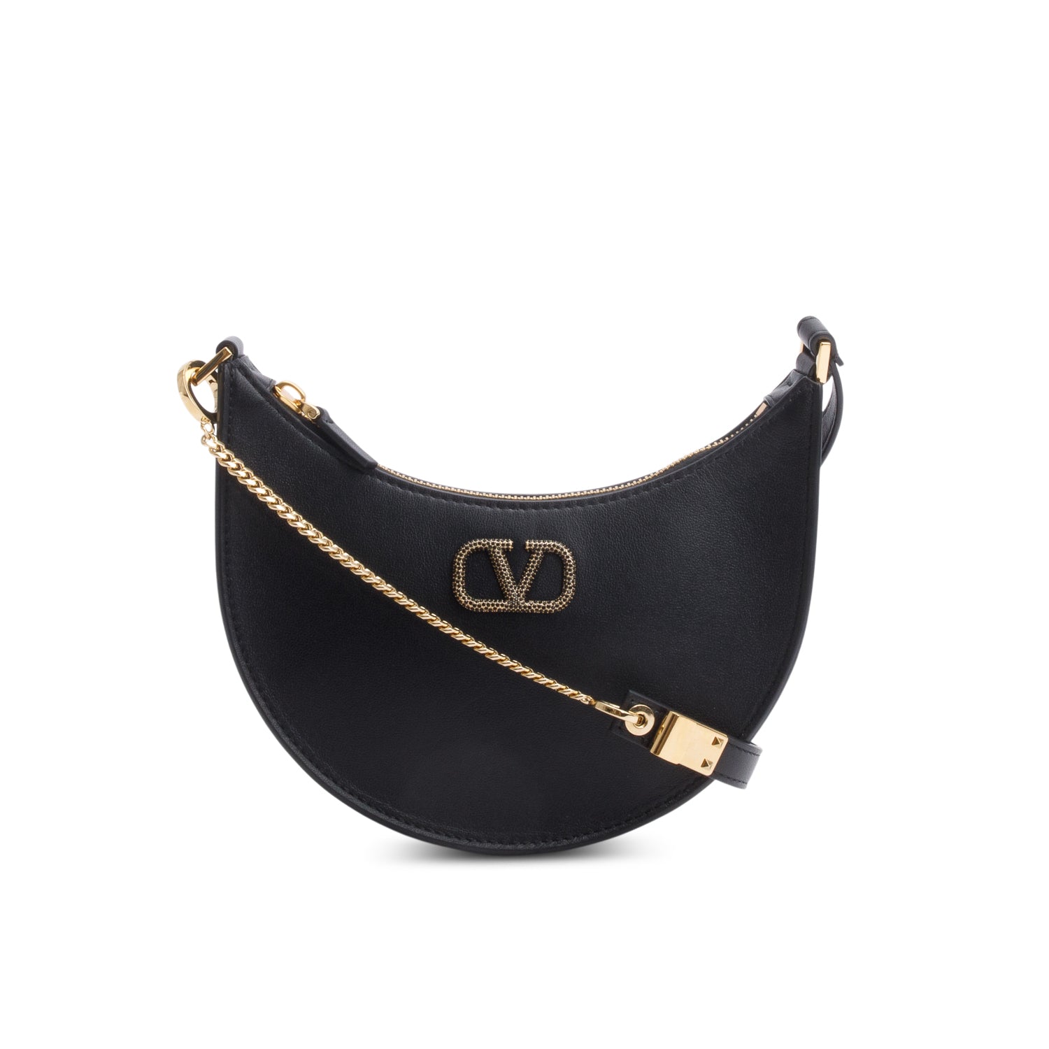 Black Nappa Mini Vlogo Moon Hobo Bag