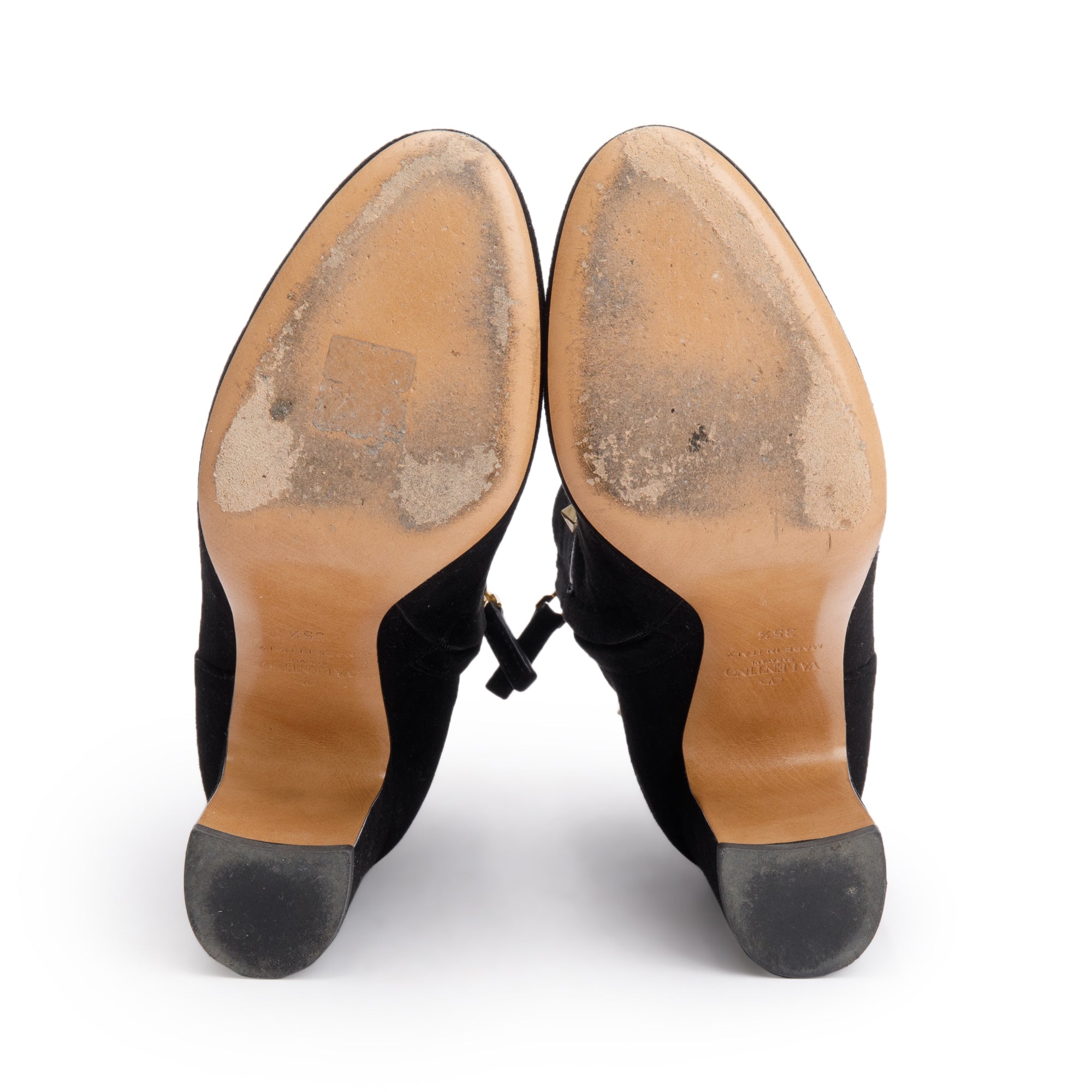Black Suede Rockstud Accent Ankle Boots, Size 35.5