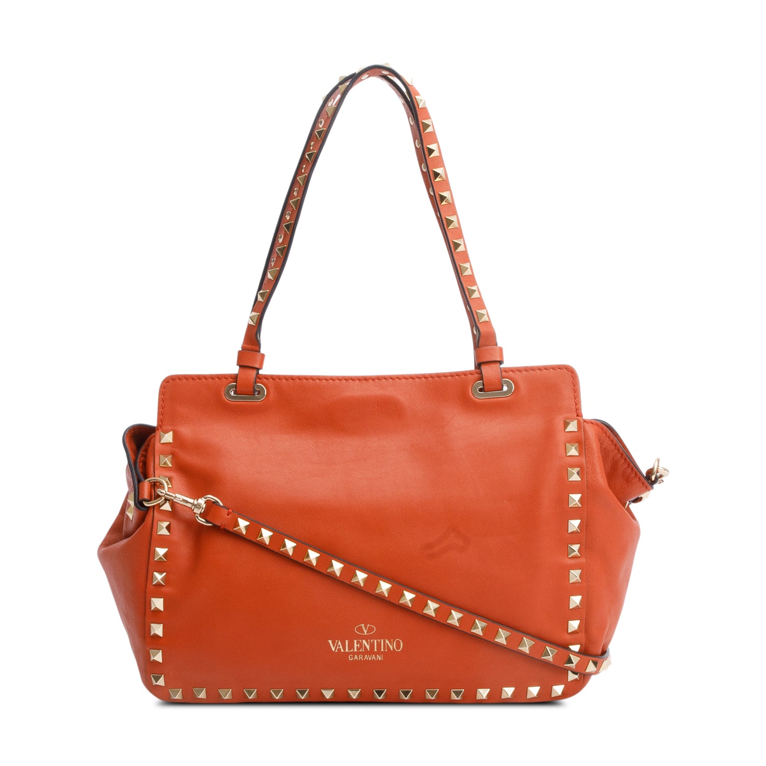 Coral Calfskin Leather Small Rockstud Tote Bag w/ Strap