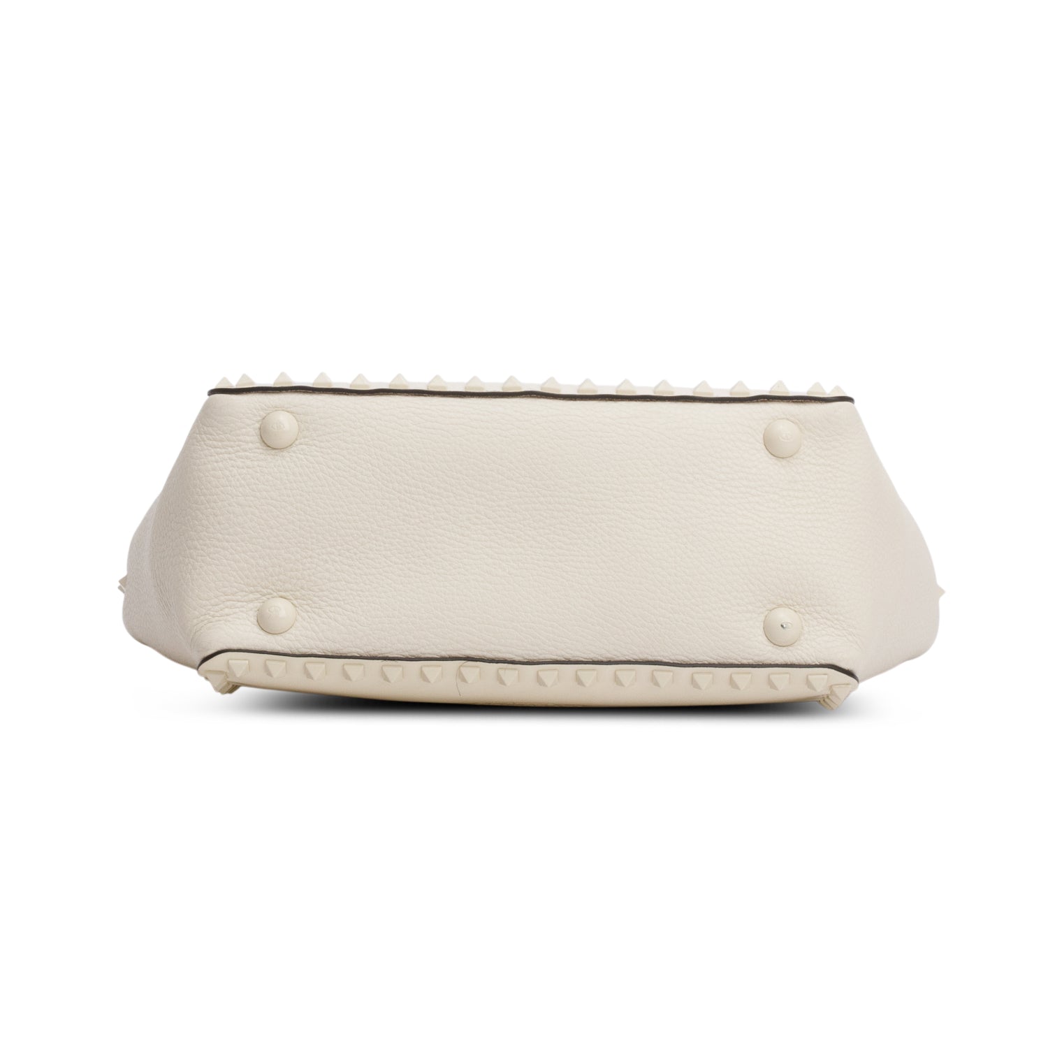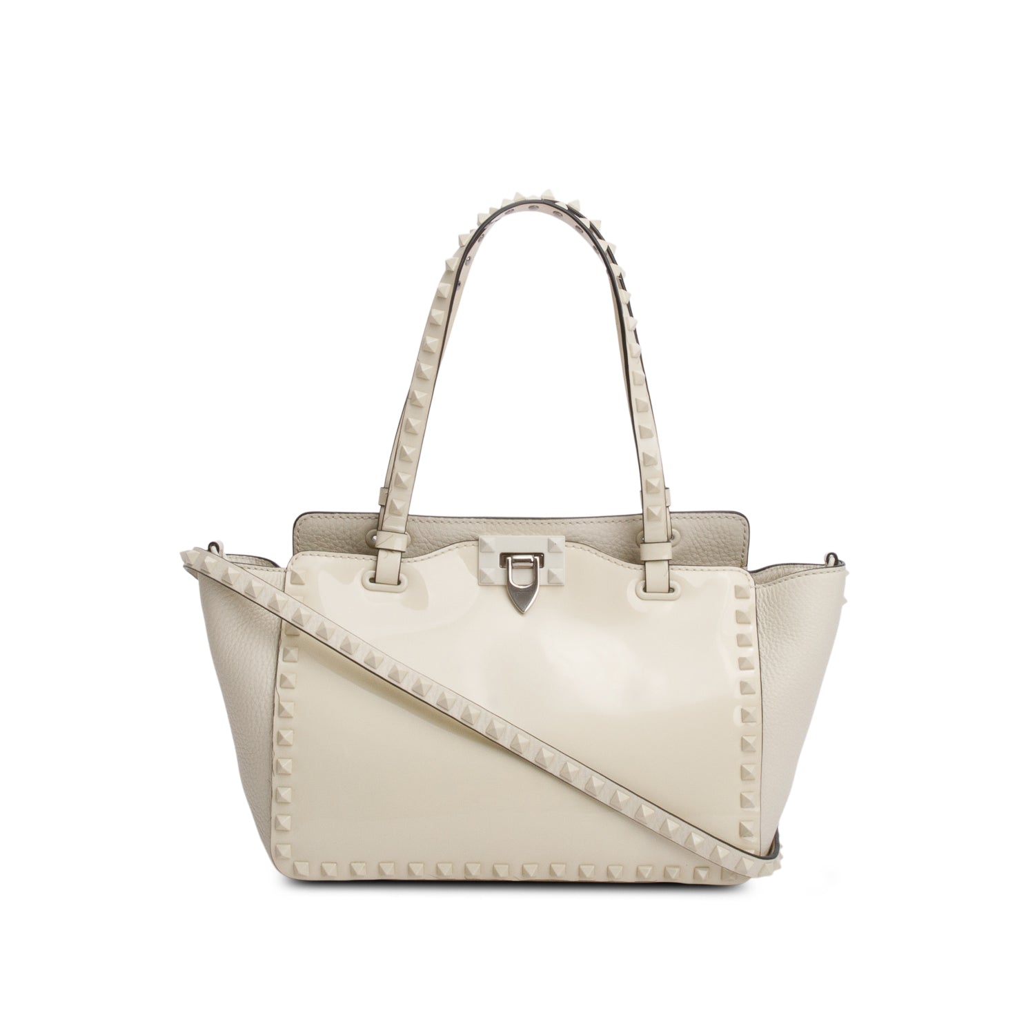 White Patent & Calfskin Leather Small Rockstud Tote Bag w/ Box & Strap