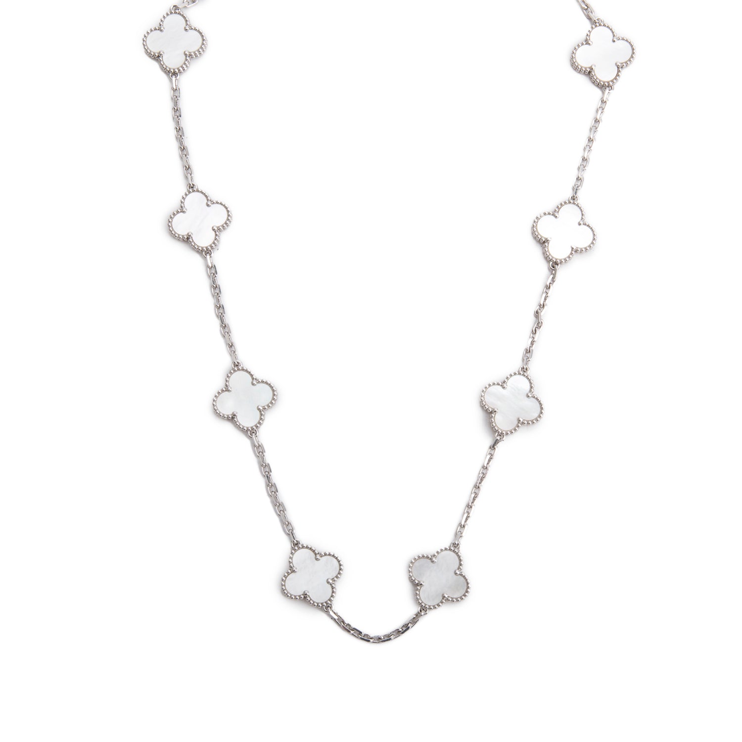 18k White Gold Vintage Alhambra 10 Motif Mother of Pearl Necklace