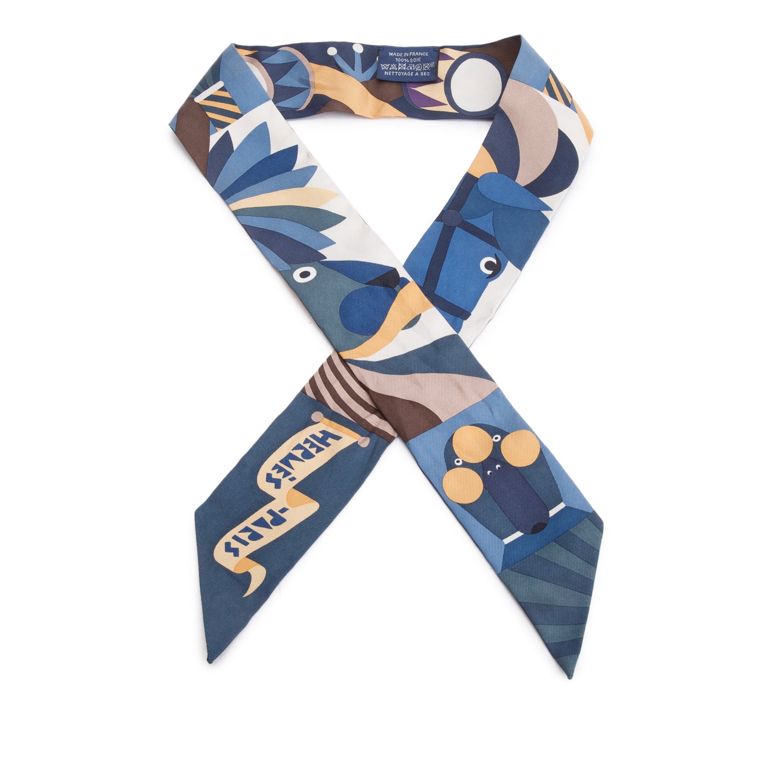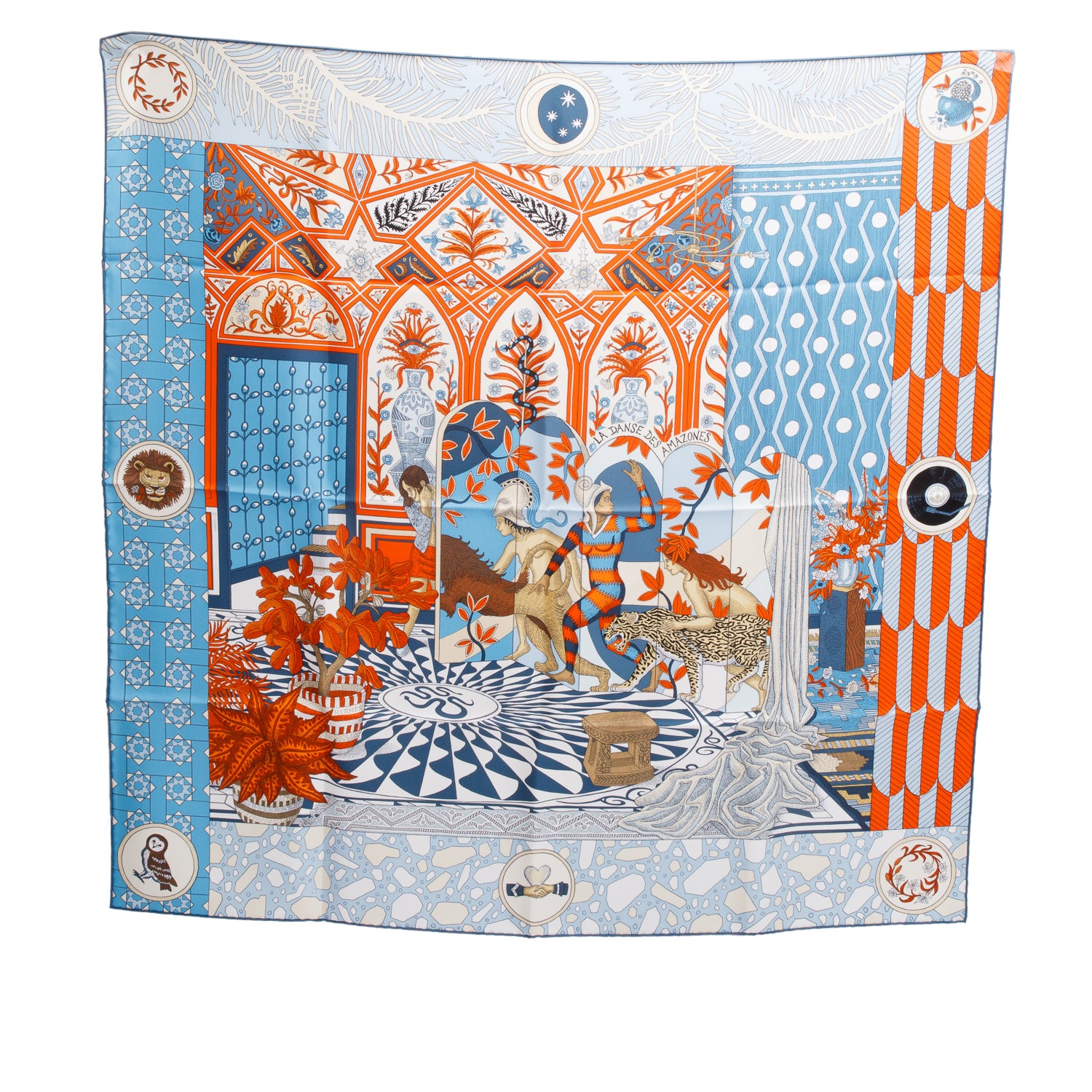 Blue/Yellow/Red 'Grande Tenue' Silk Scarf 90