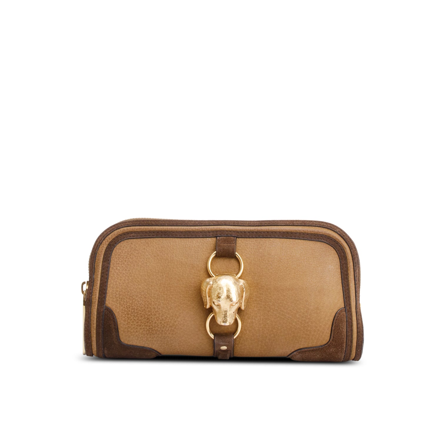 Beige/Brown Nubuck Leather Alma Dog Clutch