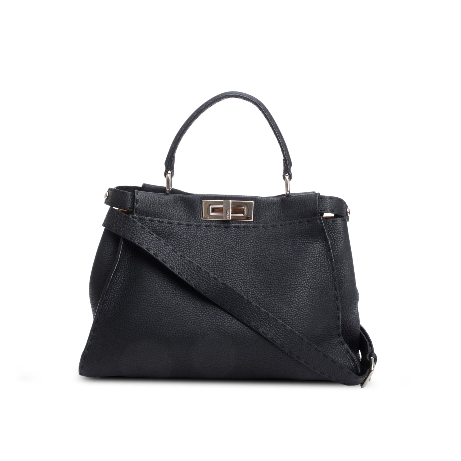 Black Calfskin Leather Faces XL Peekaboo Bag w/ Strap