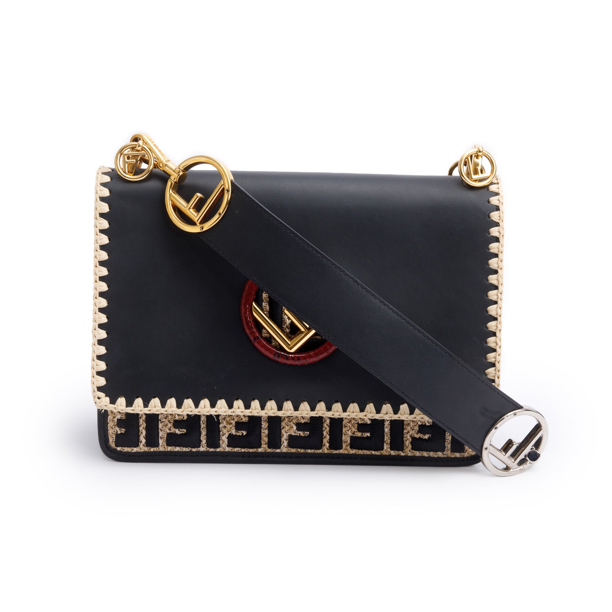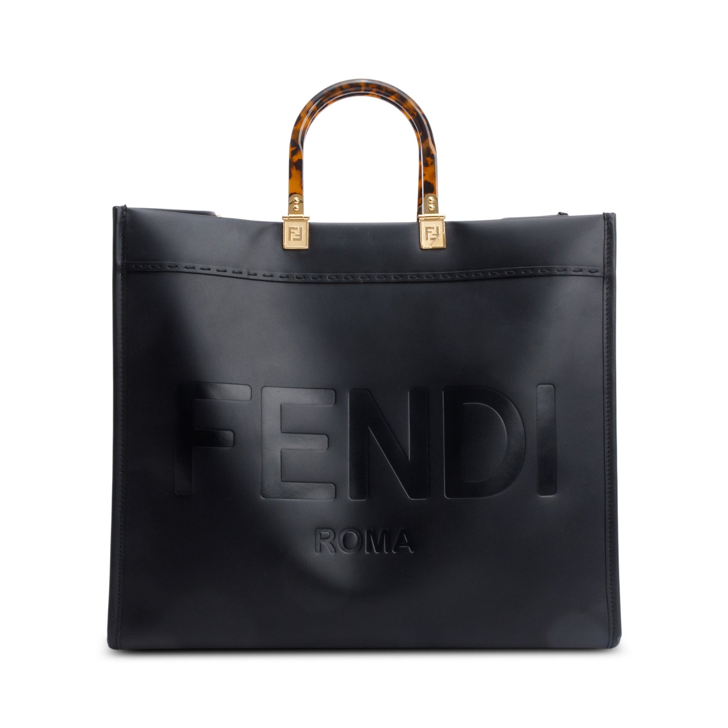 Black FF Embossed Leather Mini Sunshine Shopper Tote