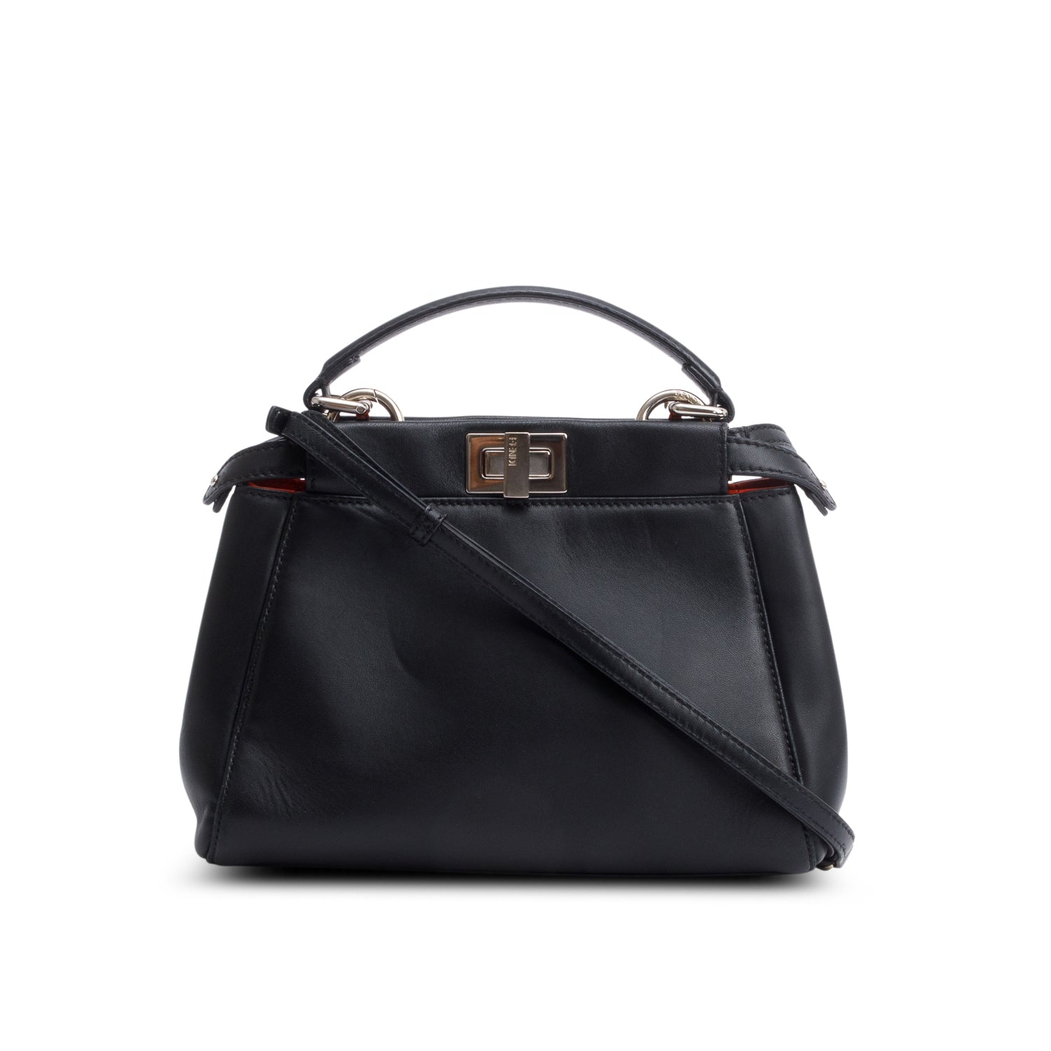 Black Calfskin Leather Mini Peekaboo Bag w/ Strap