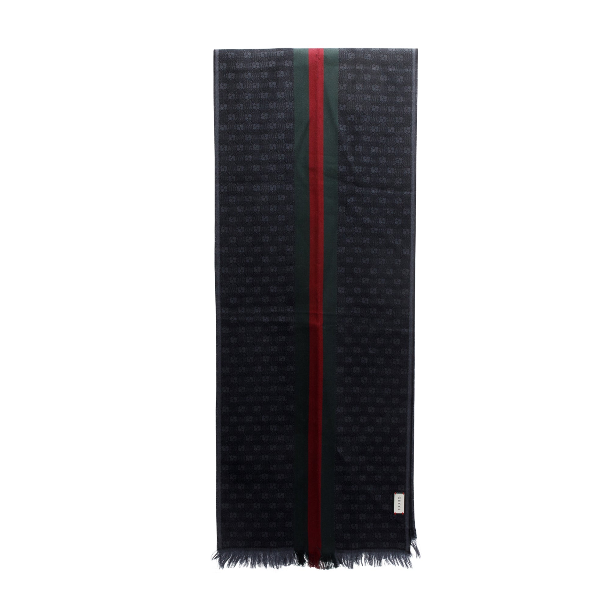 Black GG Web Jacquard Wool Silk Scarf