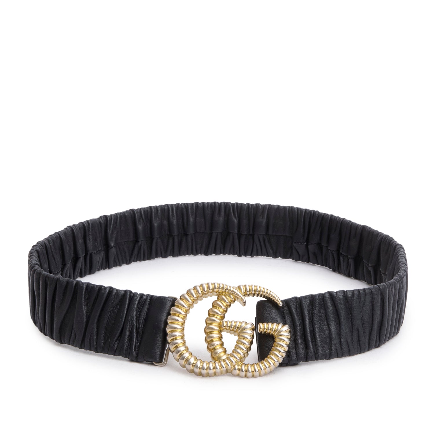 Black Leather Belt with Double G Buckle