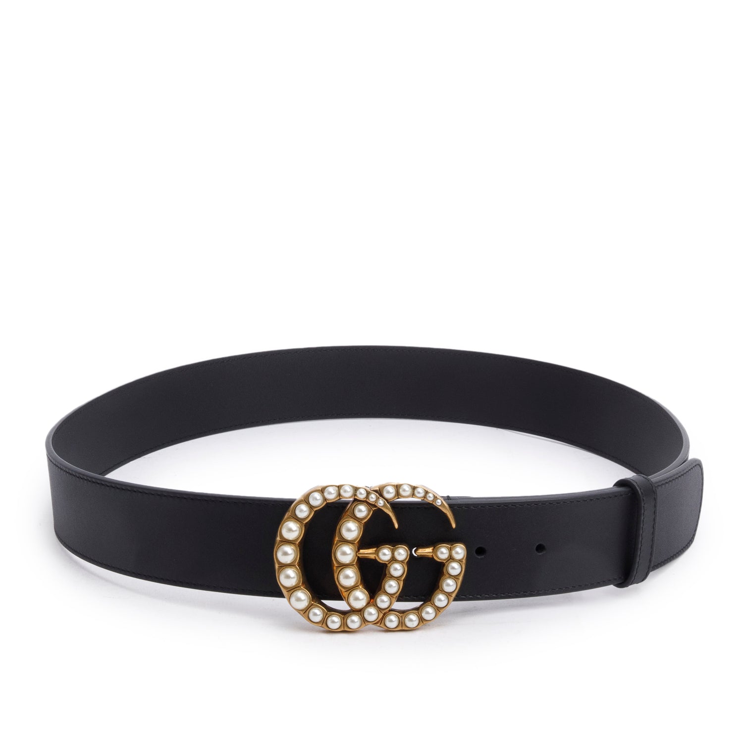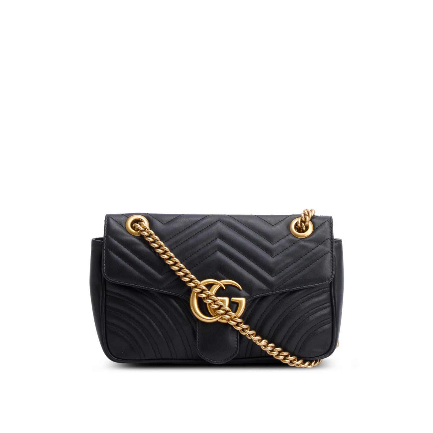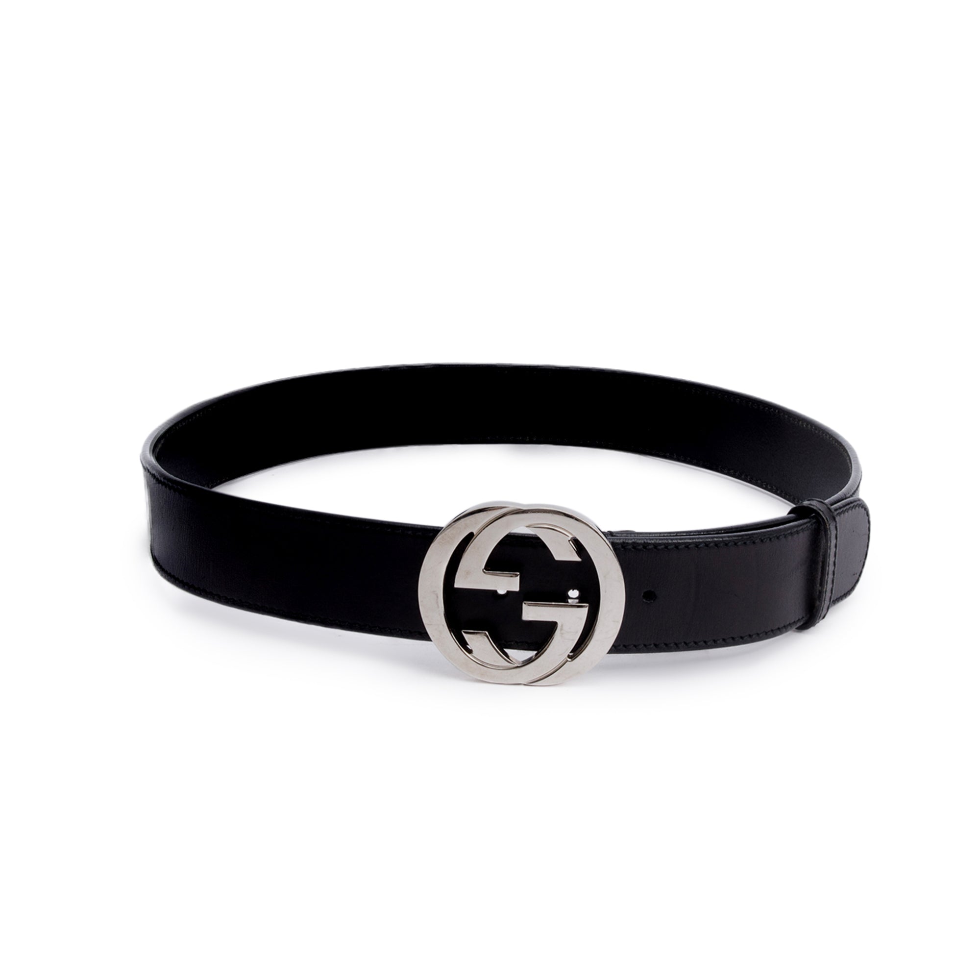 Black Leather Interlocking G Wallet on Chain w/ Box