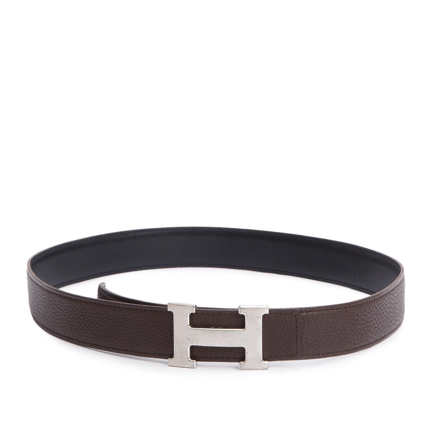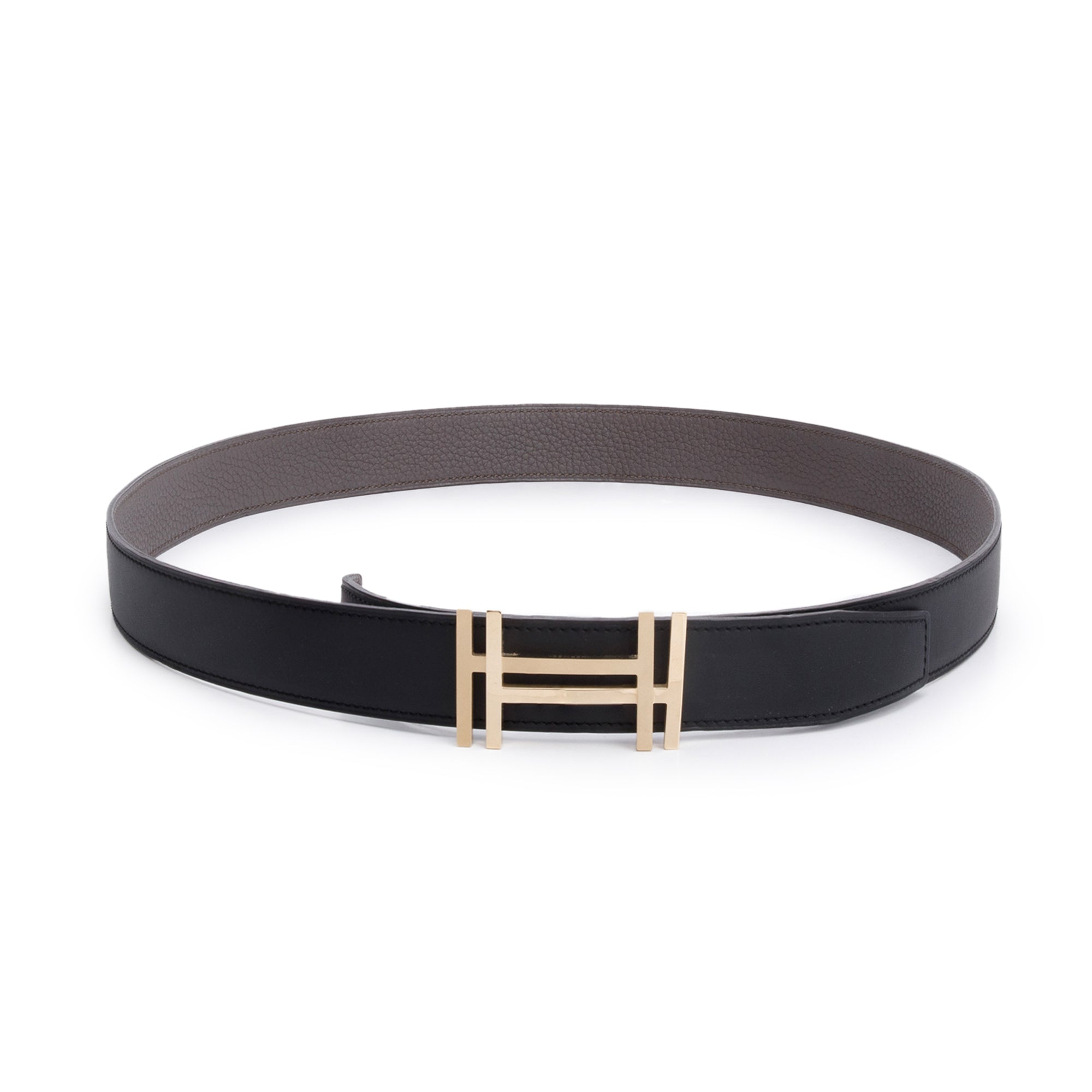 Noir/Orange Box Togo Leather Reversible 32 mm H Au Carre Belt Kit 90