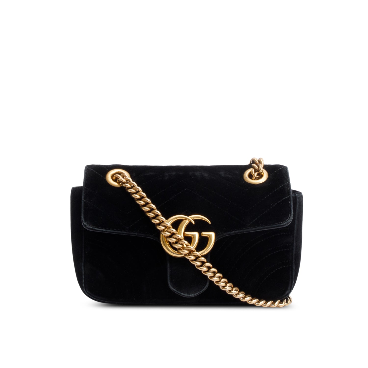 Black Velvet Matelasse GG Marmont Small Shoulder Bag