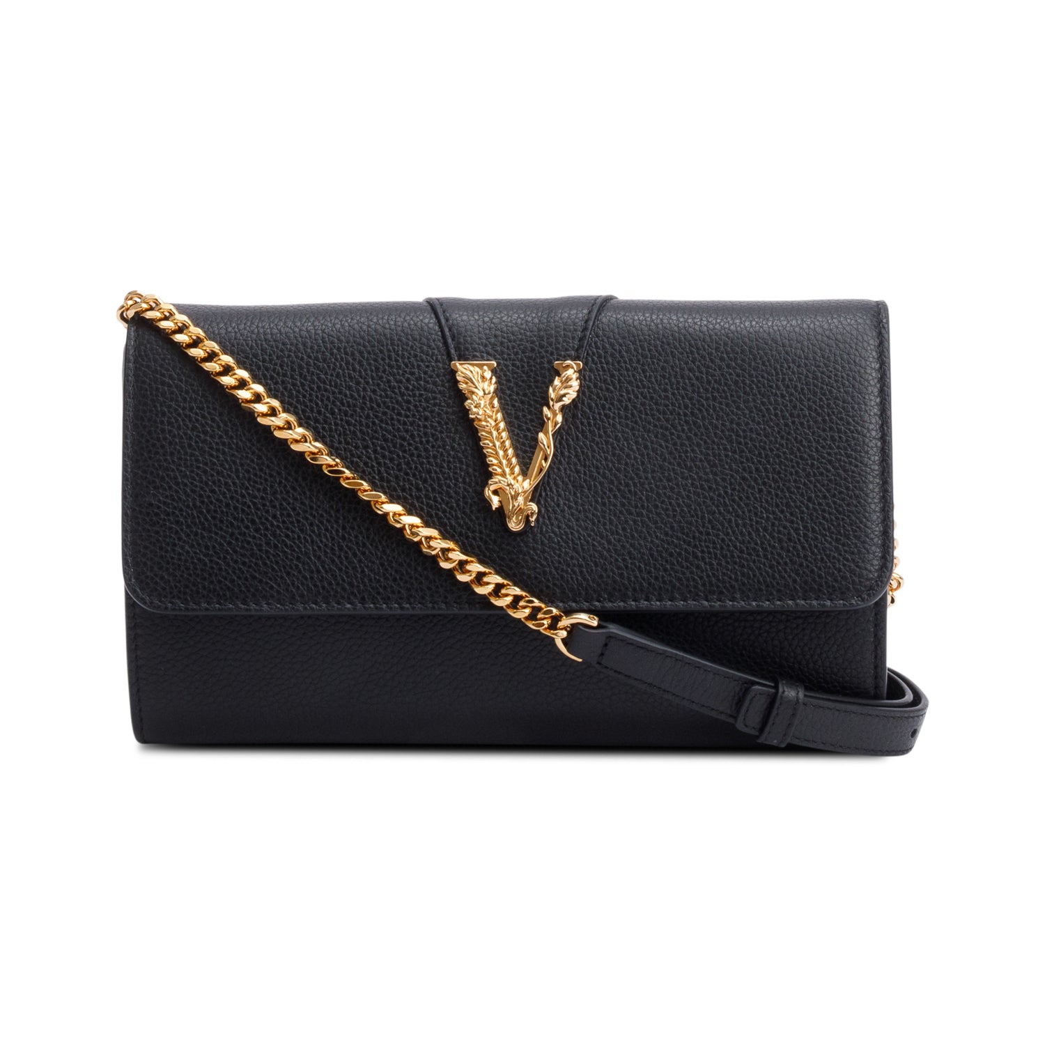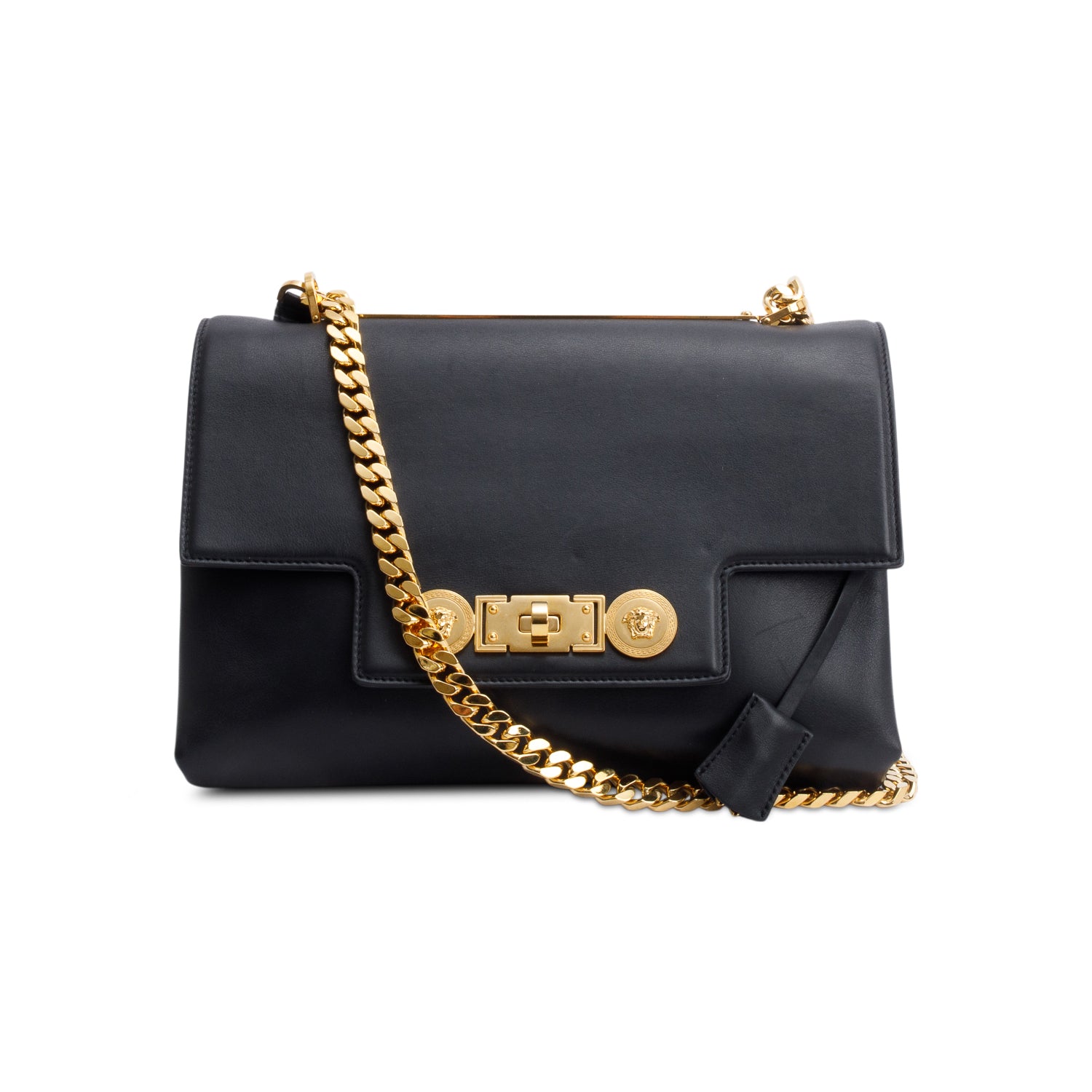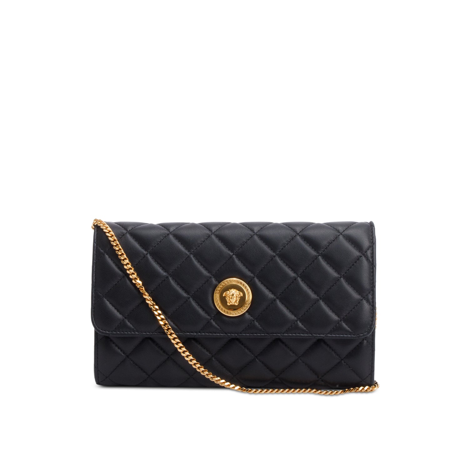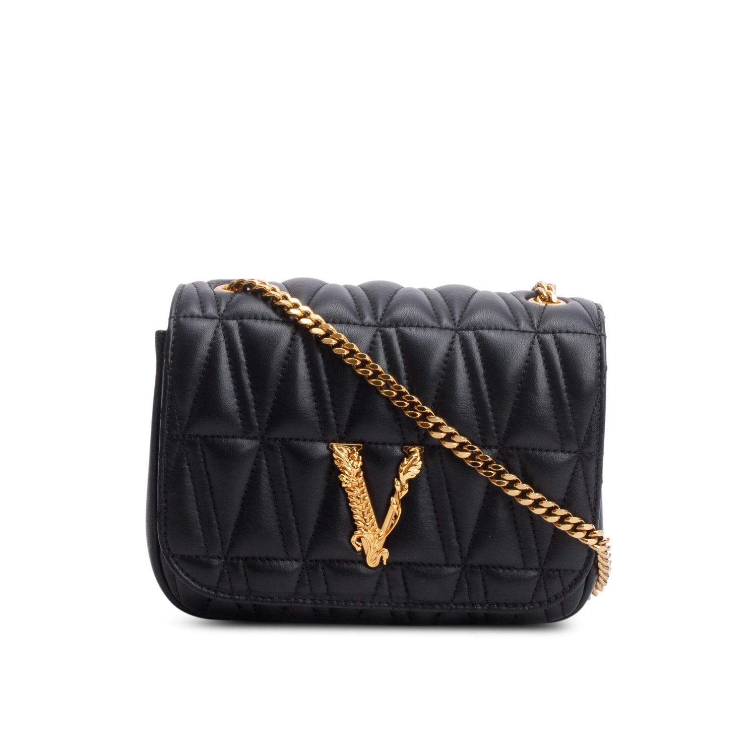 Black Quilted Leather Virtus Shoulder Bag w/ Box