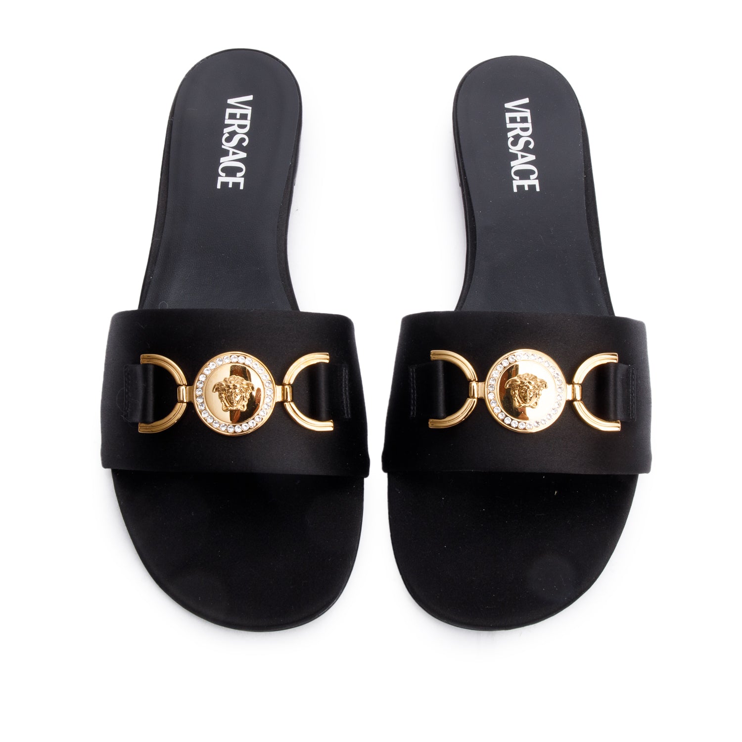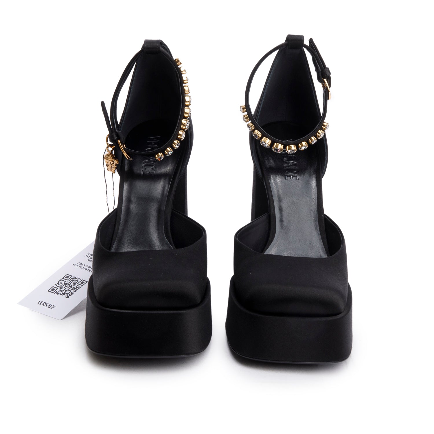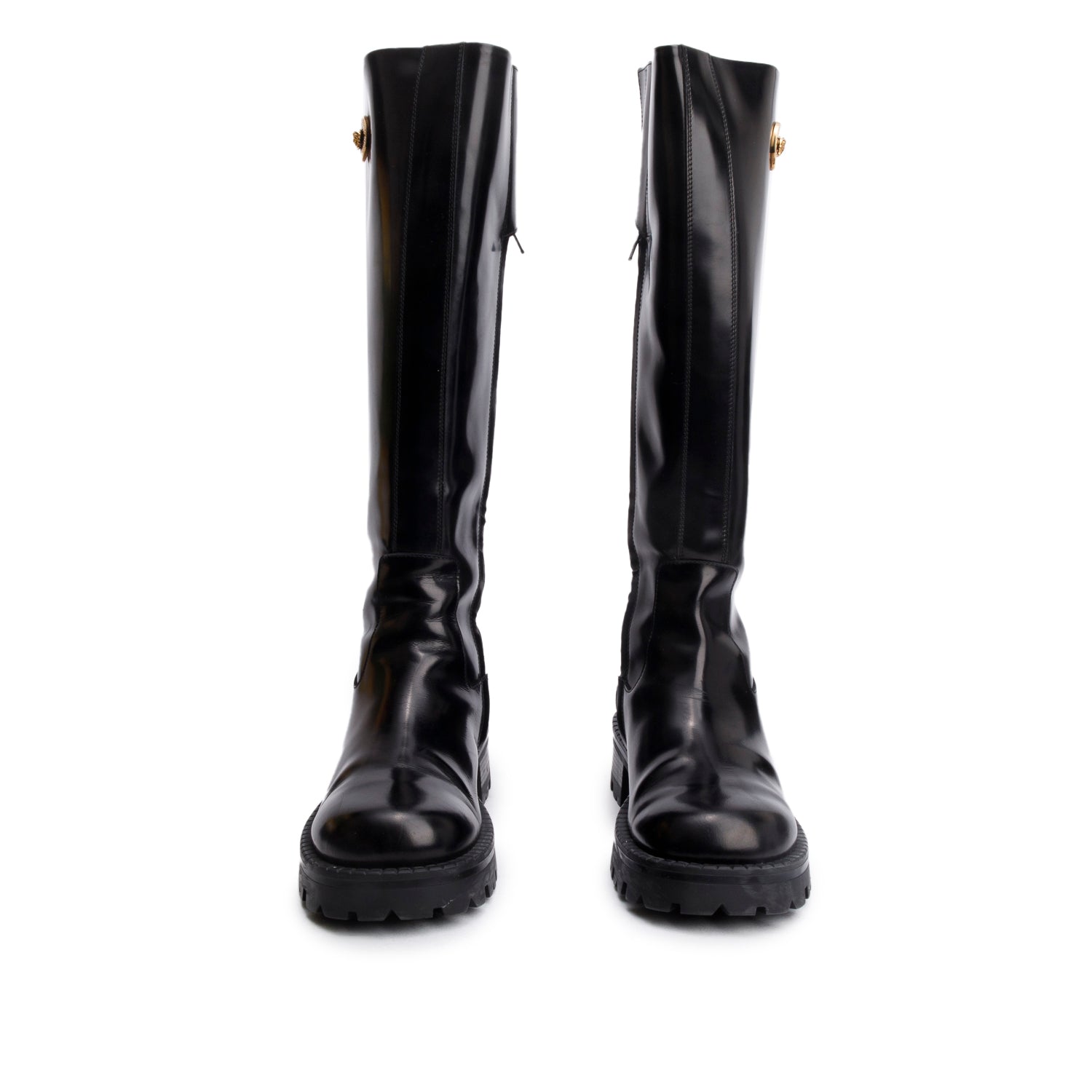 Black Patent Leather Medusa Knee High Boots, Size 41 w/ Box