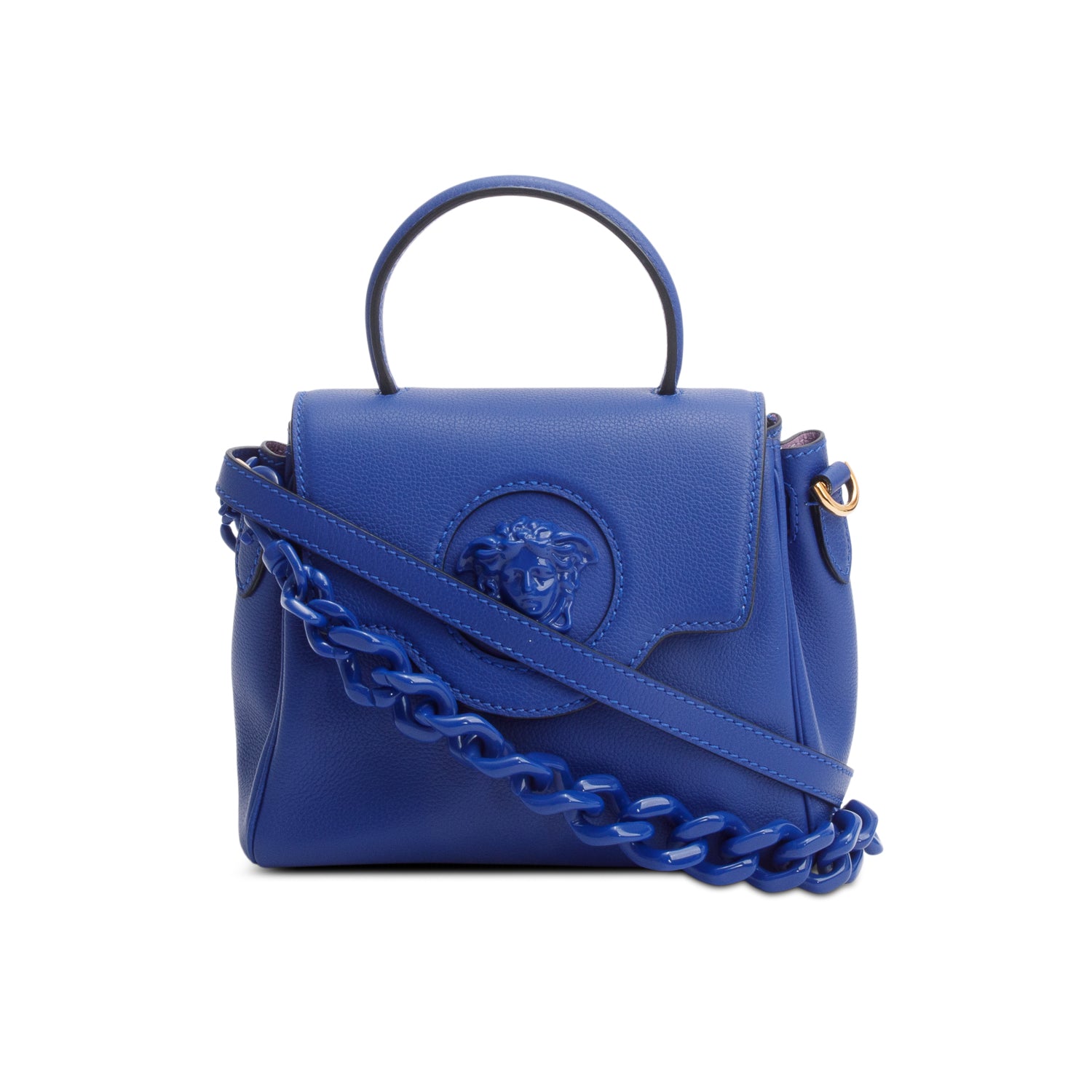 Blue Grained Leather La Medusa Small Handbag w/ Straps