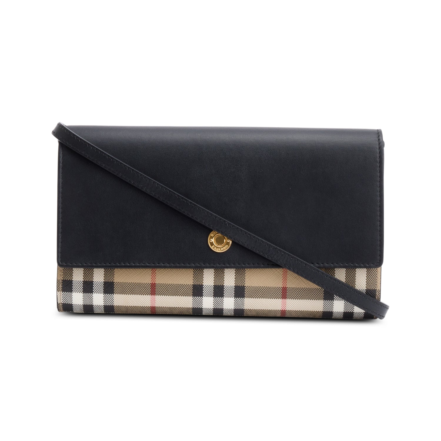 Black Embossed Leather Cavendish Check Continental Wallet w/ Box