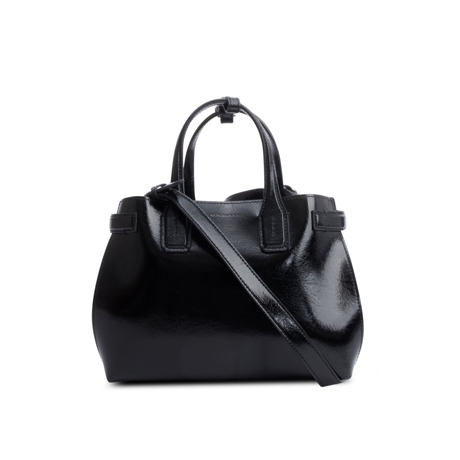 Black Grainy Leather Vertical Mini Denny Tote w/ Strap