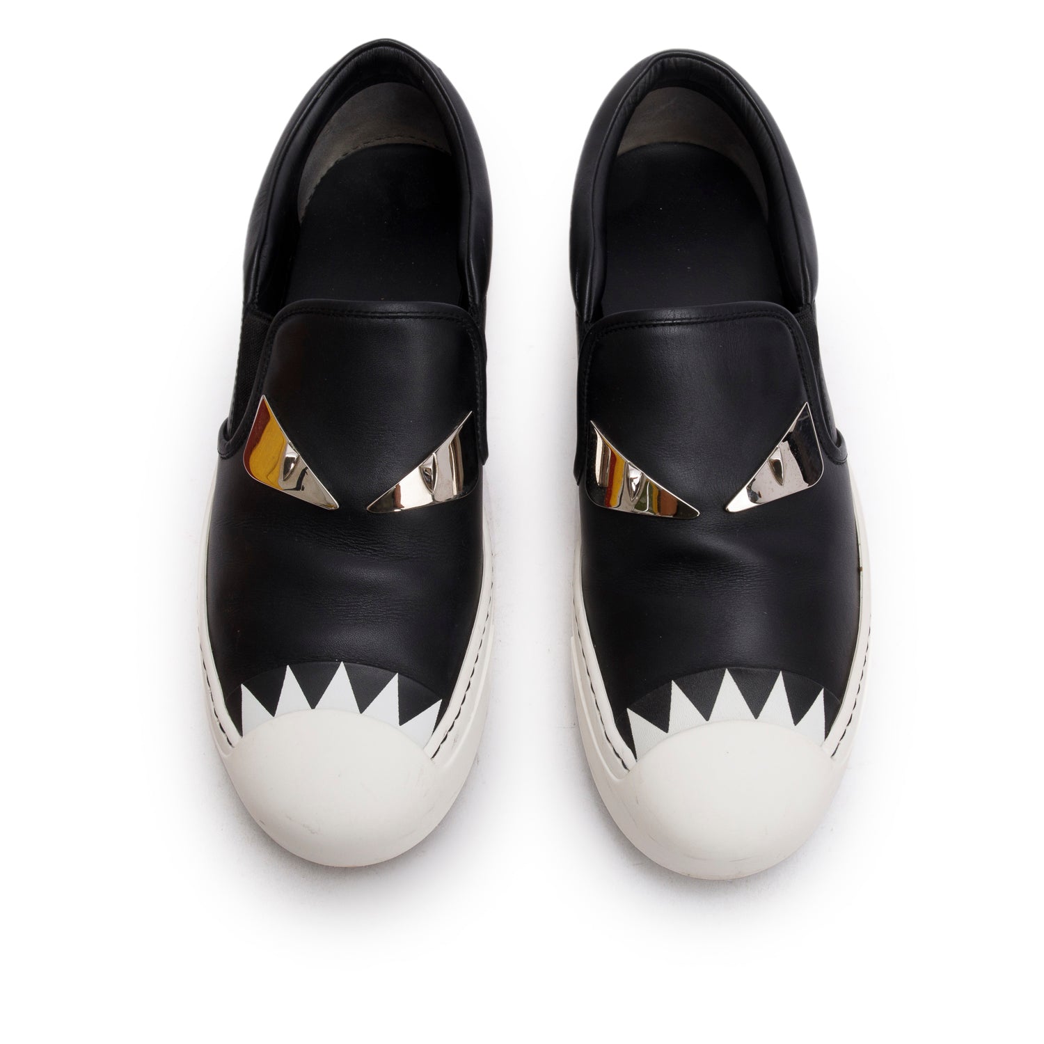 Black Leather Monster Eye Sneakers, Size 39 w/ Box