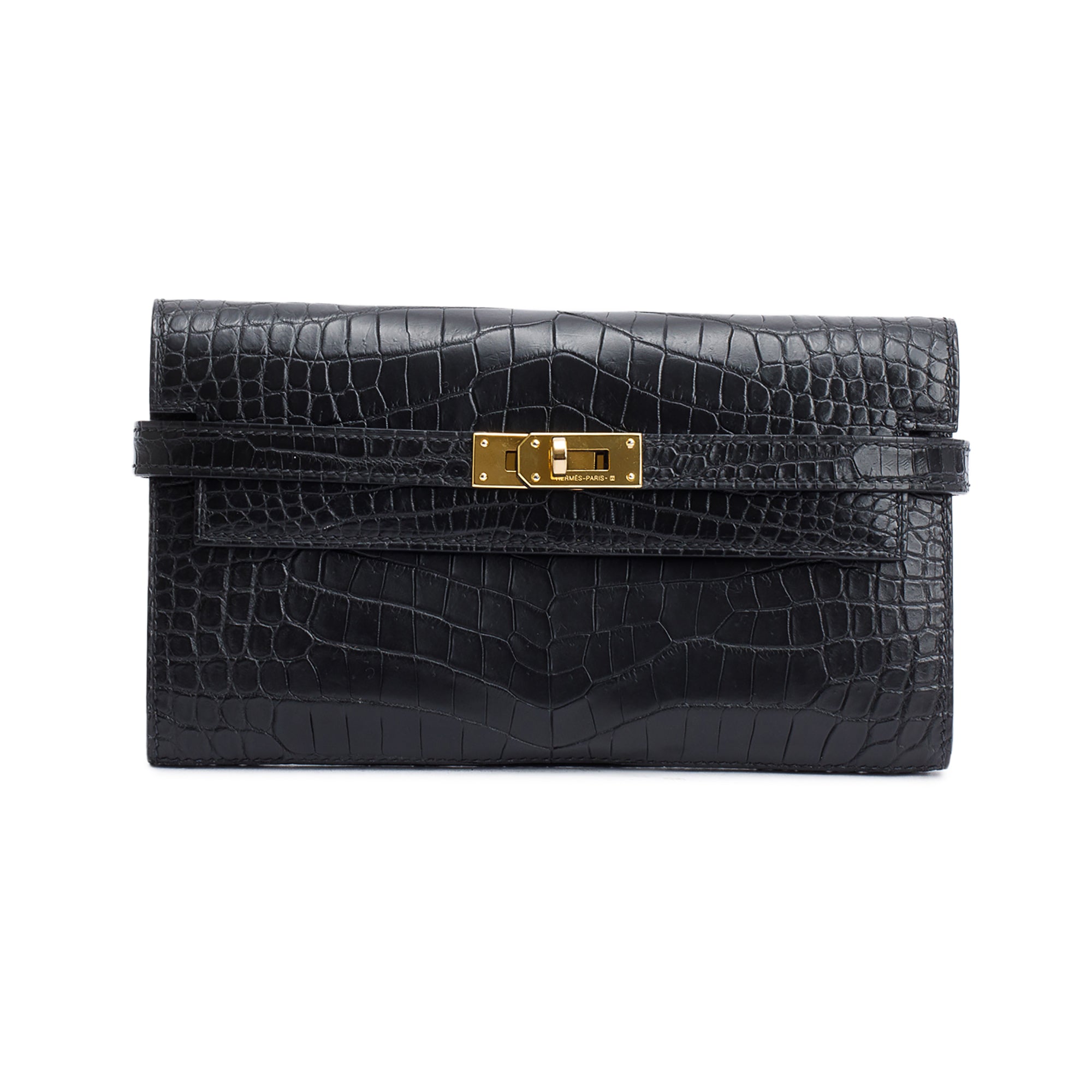 2020 Gold Epsom Leather Classic Kelly Longue Wallet