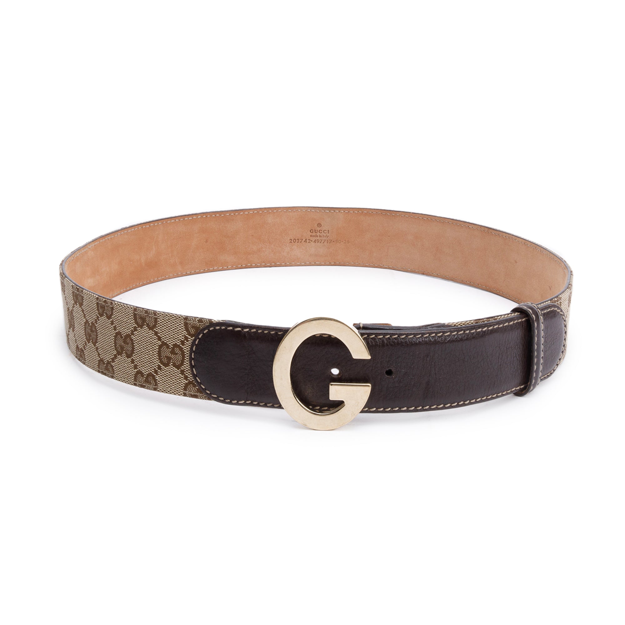 GG Canvas & Metallic Gold Leather Bamboo Buckle Belt 90 36