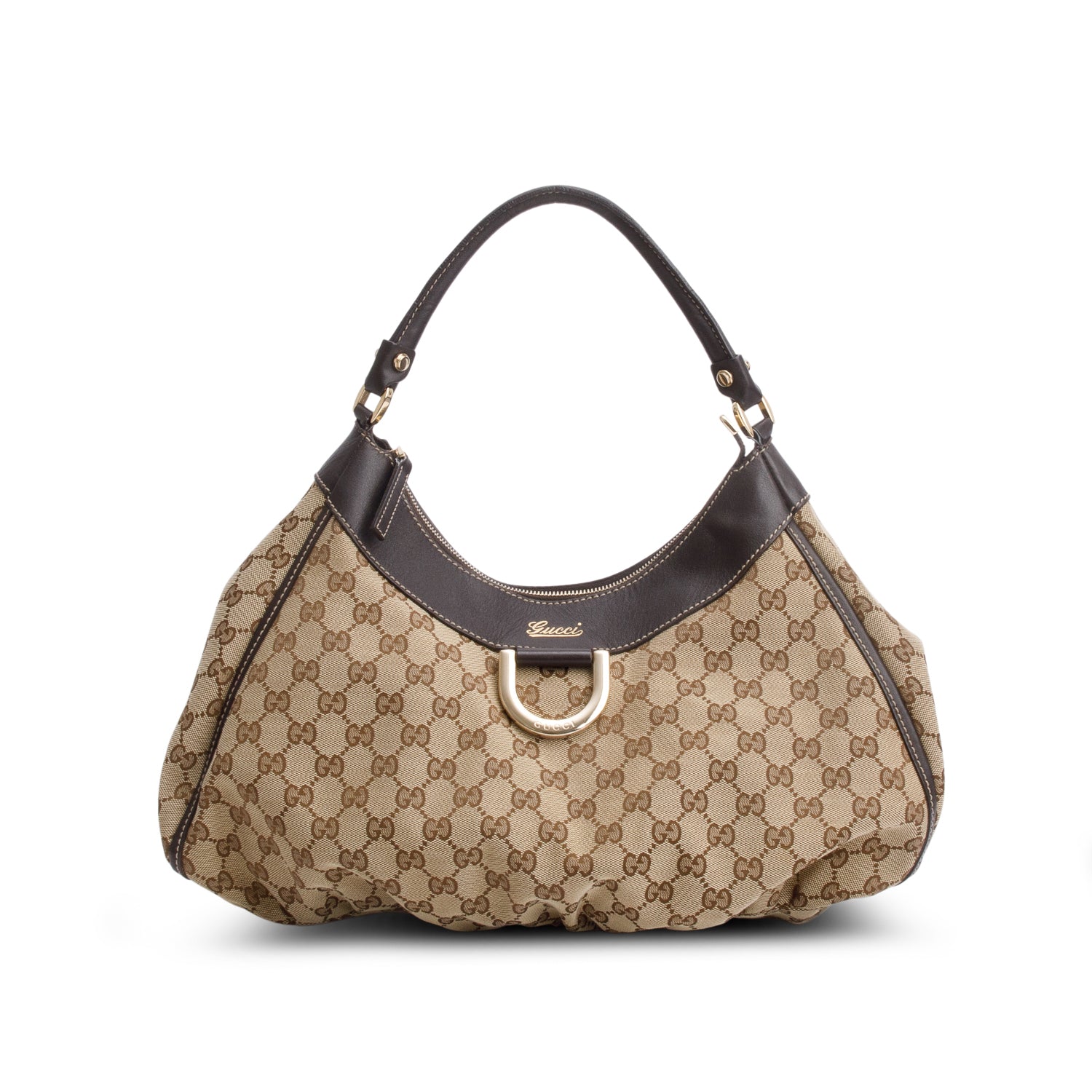 GG Canvas Brown Leather Trim Large Sukey Hobo