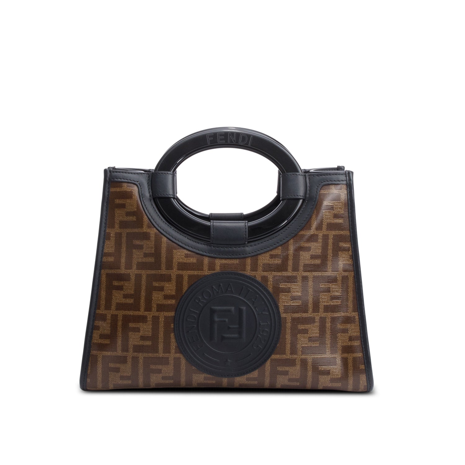 Brown FF Embossed Leather Mini Sunshine Shopper Tote