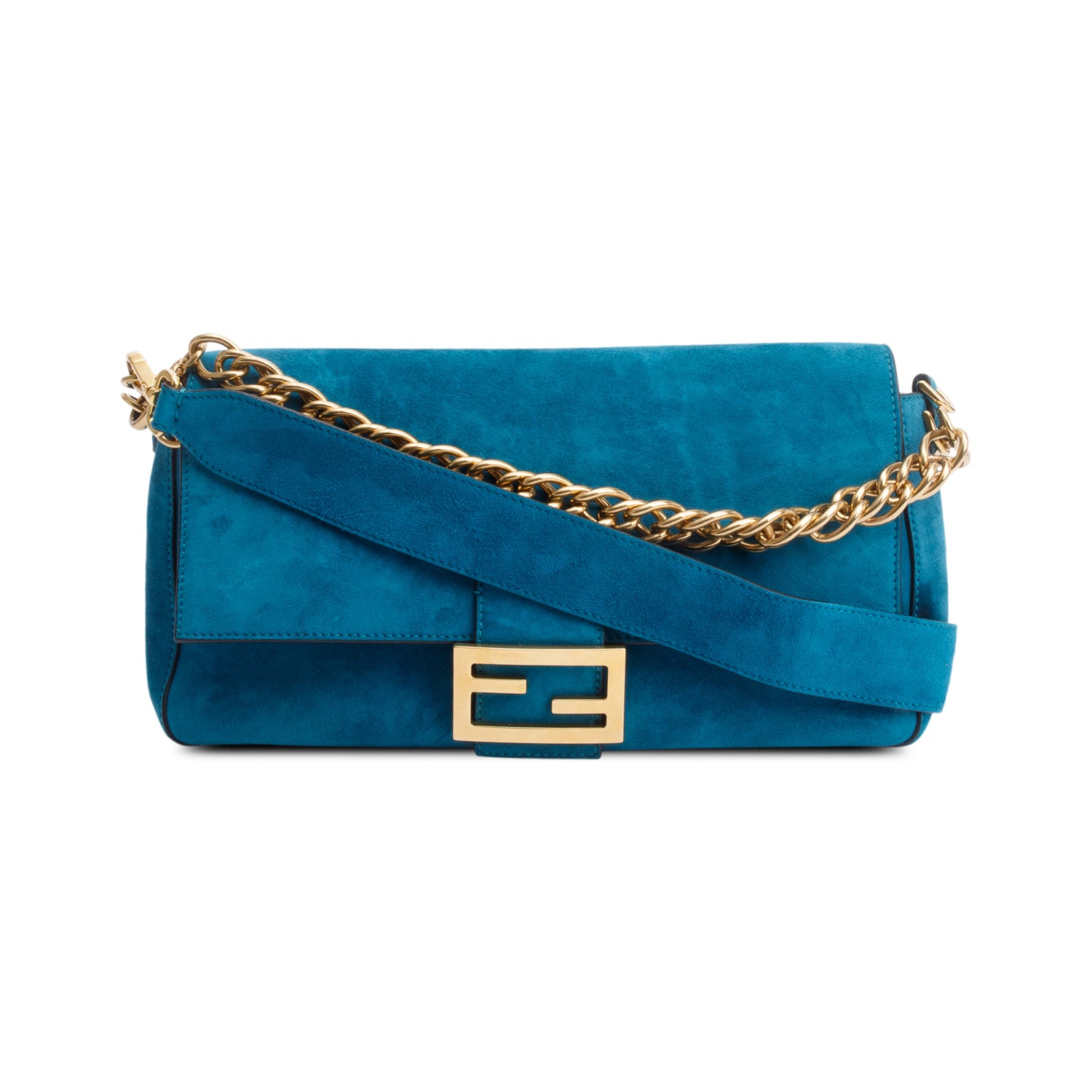 Blue Suede Large Baguette Shoulder Bag