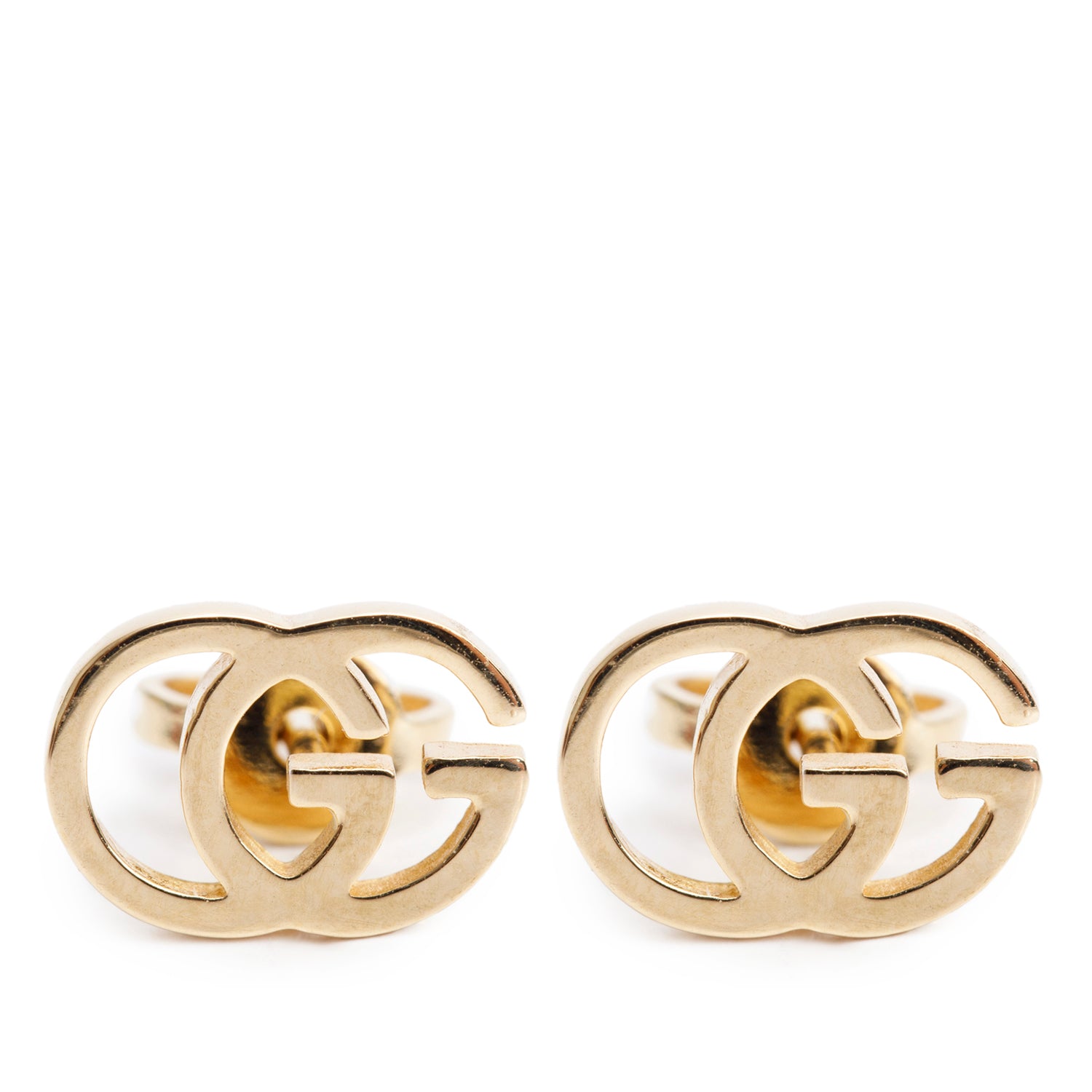 18k Yellow Gold GG Running Stud Earrings with Diamonds
