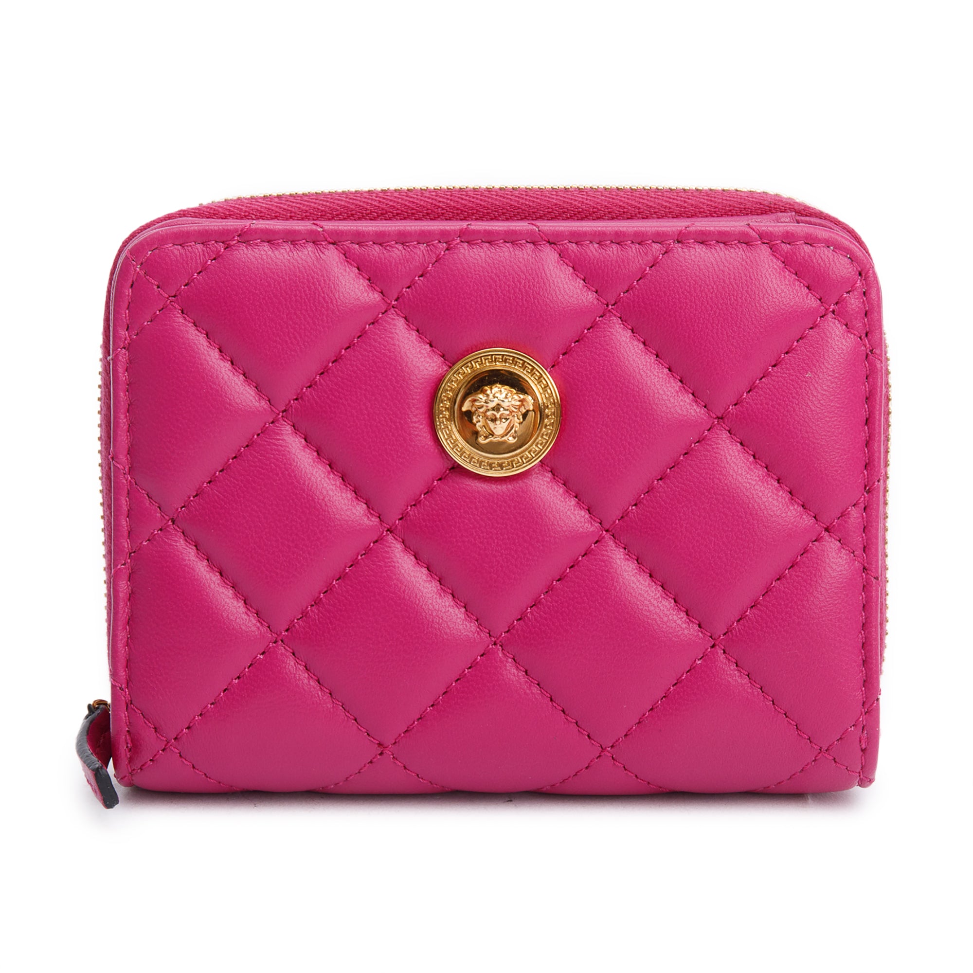 Pink Velvet Quilted Medusa Wallet on Chain w/ Box