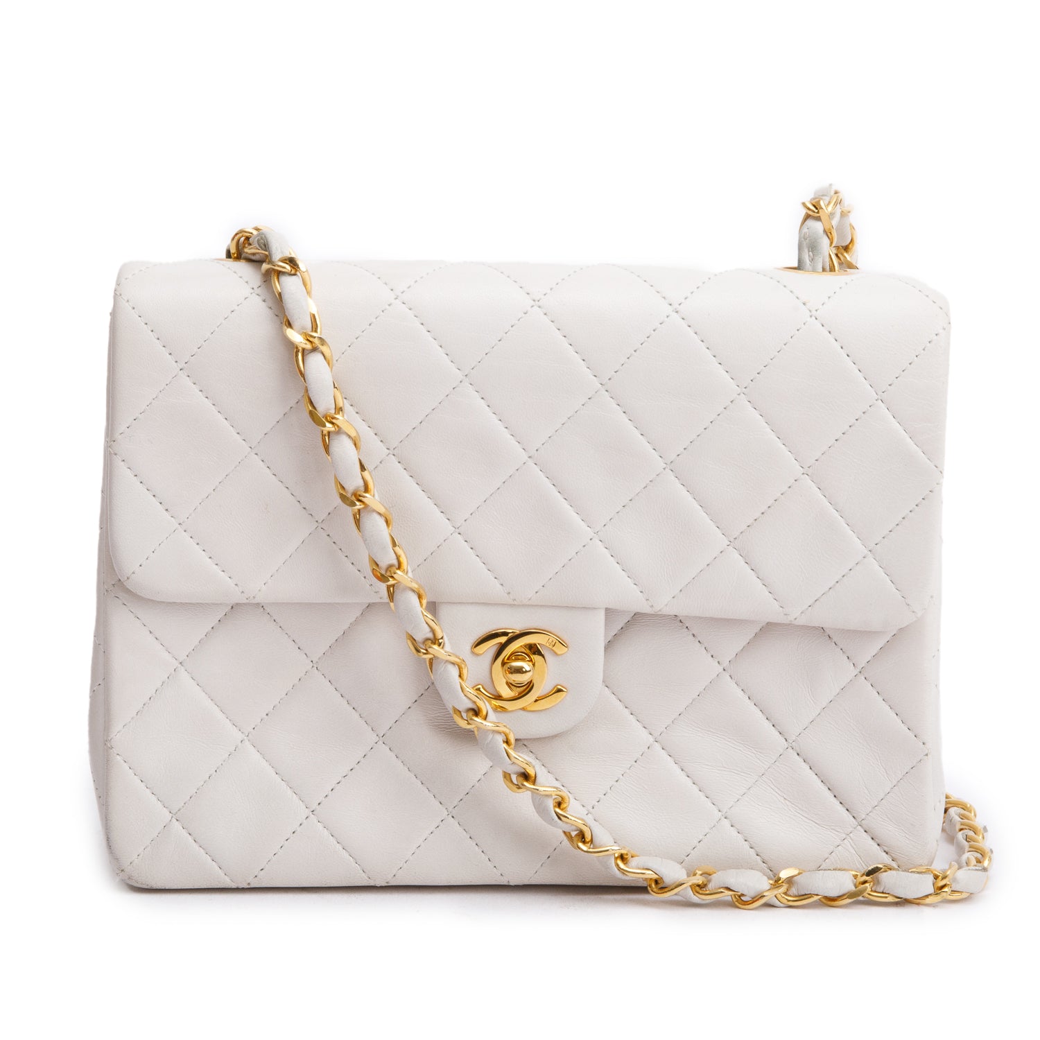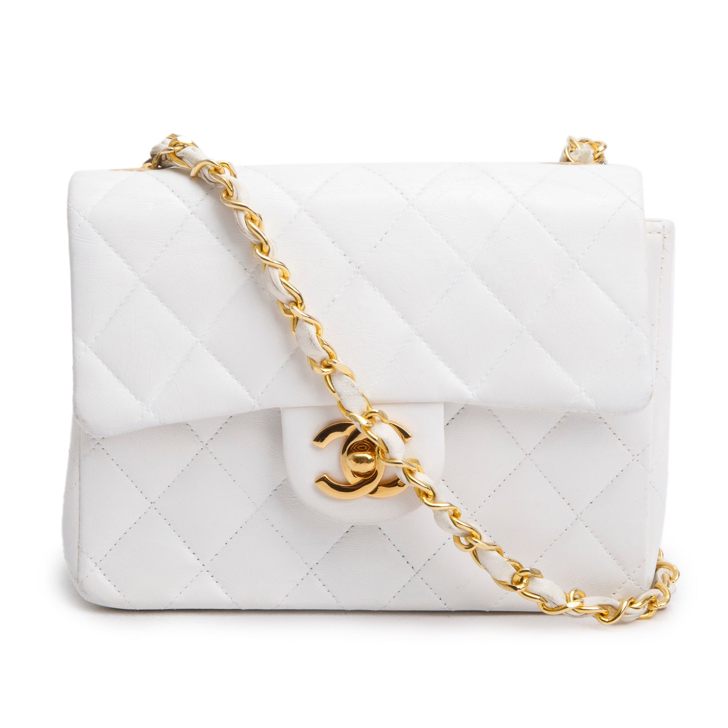 Vintage White Lambskin Quilted Mini Square Flap Bag