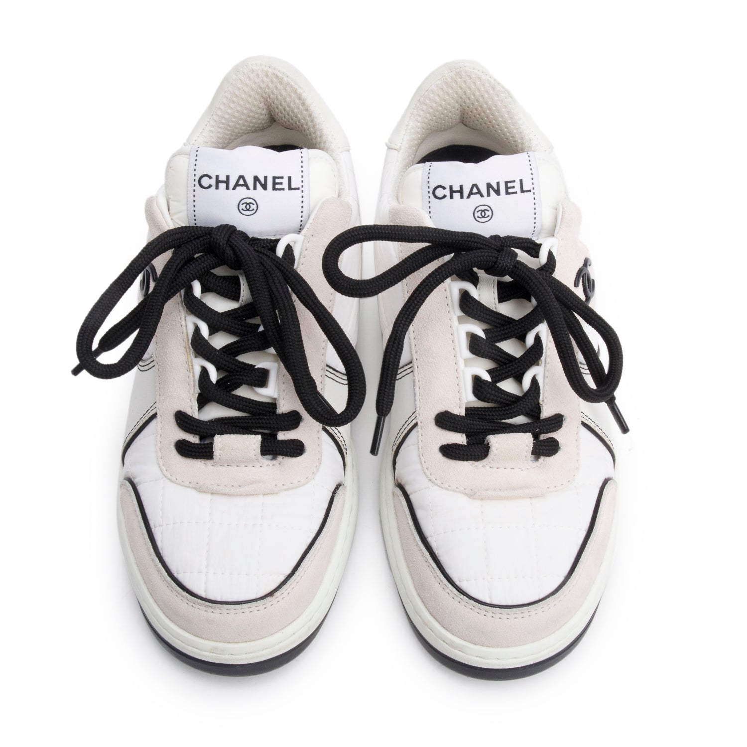 White Calfskin Gum CC Logo Sneakers, Size 40