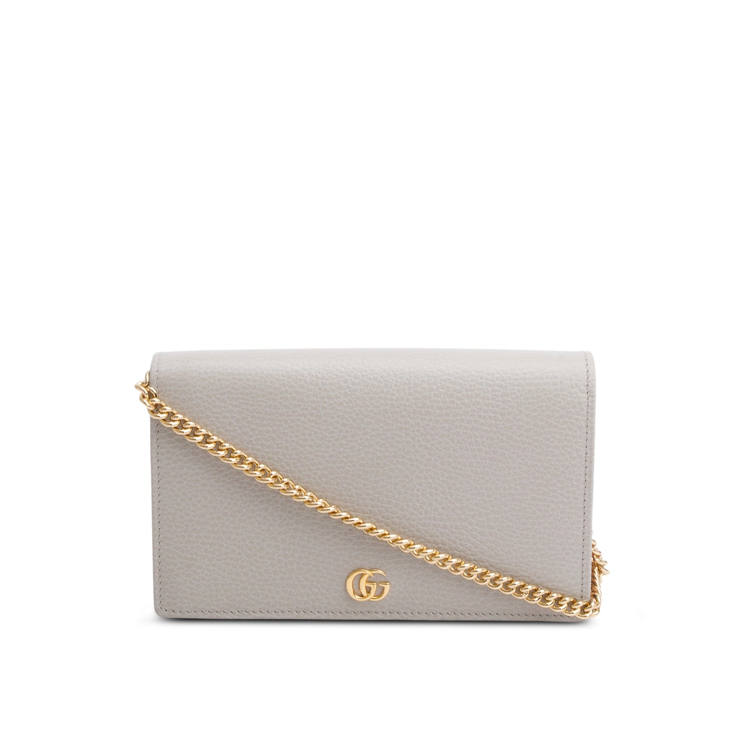 Grey/Pink Mini GG Marmont Chain Wallet w/ Box