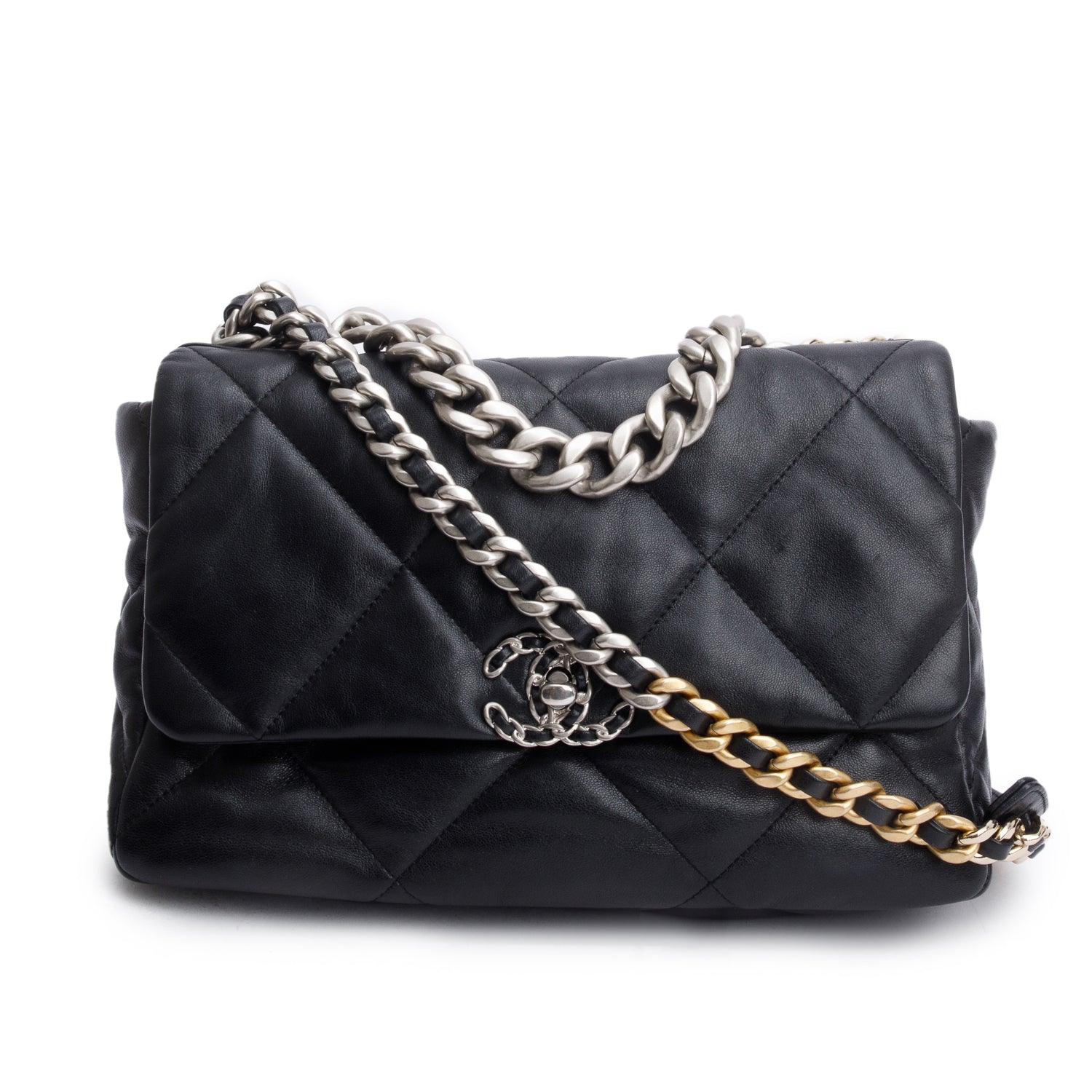 2022 Black Lambskin Quilted Large 19 Flap Bag w/ Receipt