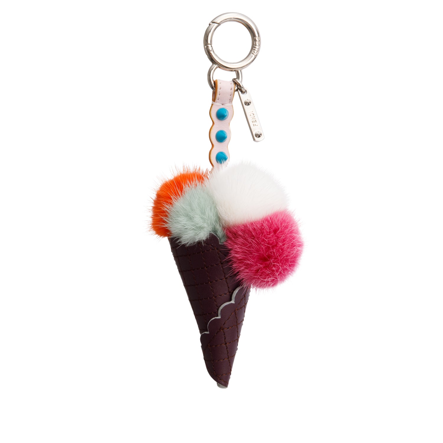 Multicolor FF Embossed Stripe Calfskin Leather Mini Mon Tresor Bucket Bag w/ Strap