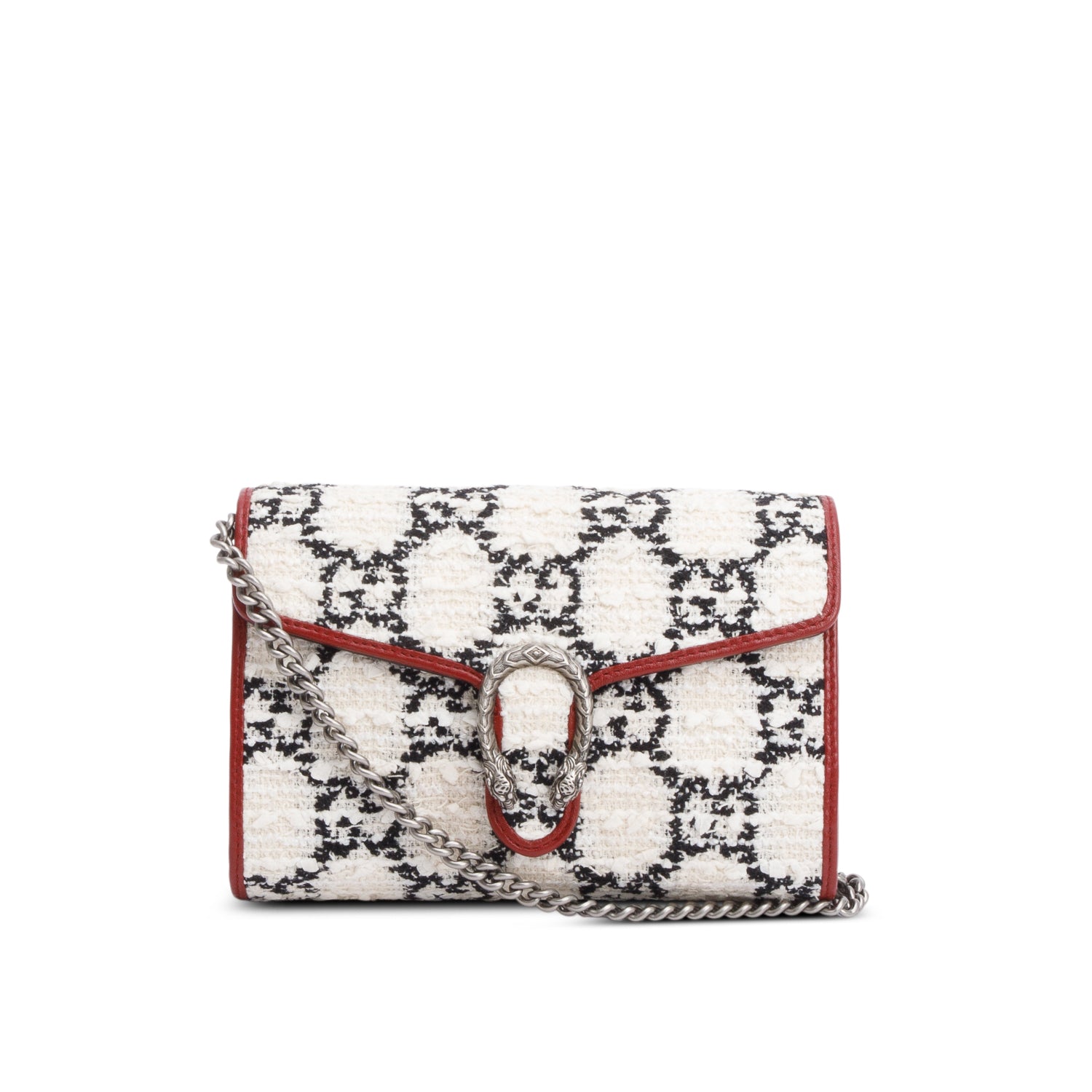 White Textured Calfskin Web Mini Ophidia Crossbody Bag